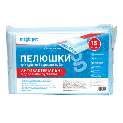 Пелюшки антибактеріальні з деревним вугіллям 60*60см, (15шт)