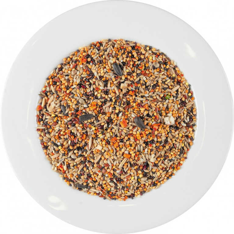 Рецептура корму розроблена спеціально для канарок та інших декоративних птахів, які утримуються в домашніх умовах. Вона складена на основі найновітніших світових норм годування, а також рекомендацій провідних світових фахівців з розведення та утримання канарок.Унікальний за складом, корм включає відбірне зерно, насіння, смаколики, а також інгредієнти з природного ареалу проживання канарок. Рецептура гармонійно поєднала 13 інгредієнтів, серед яких високоякісне зерно, сушені фрукти, овочі, а також улюблені делікатеси – абіссінський нуг, кунжут білий, сушена паприка, чумиза. Корм збагачено інгредієнтами, які зміцнюють здоров’я, роблять оперення яскравим і прискорюють линьку.Чому треба обрати корм:КОРИСНЕ РІЗНОМАНІТНЕ ХАРЧУВАННЯ. Завдяки поживним суперфудам: амаранту, кунжуту, насінню льону.ПІДТРИМКА ІМУНІТЕТУ ТА ЗДОРОВИЙ КРОВООБІГ. Завдяки рапсу та вівсу, що містять 10 незамінних амінокислот, калій, мідь, йод.СТІЙКІСТЬ ДО СТРЕСІВ. Забезпечується завдяки амаранту та квітам ромашки.ПІДТРИМКА РОБОТИ ШКТ. Завдяки фенхелю, насінню льону та конопель, що містять альфа-лінолеву кислоту, рослинні олії.Склад: канаркове насіння, рапс, просо жовте, просо червоне, вівсяна крупа, насіння льону, чумиза, абіссінський нуг, кунжут білий, сушена паприка, сушена морква, насіння конопель, сушене яблуко.