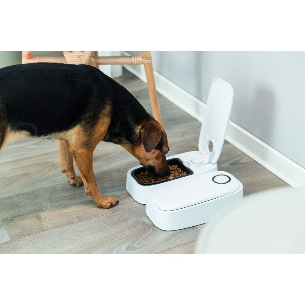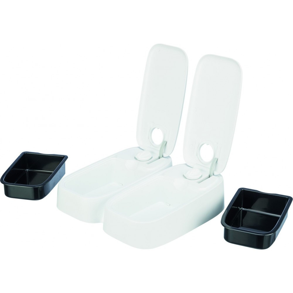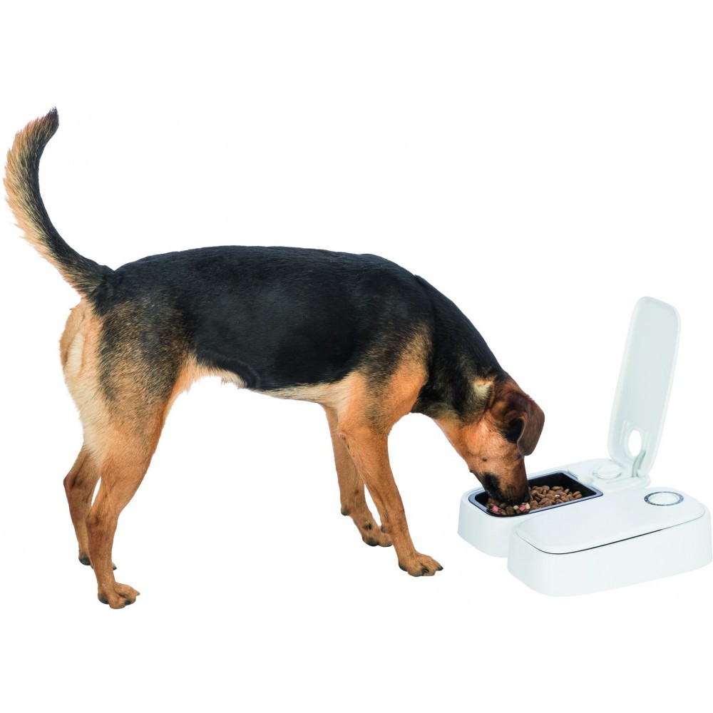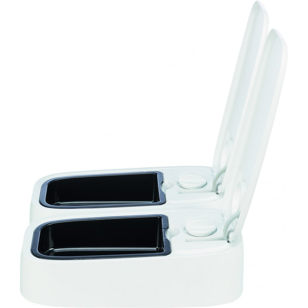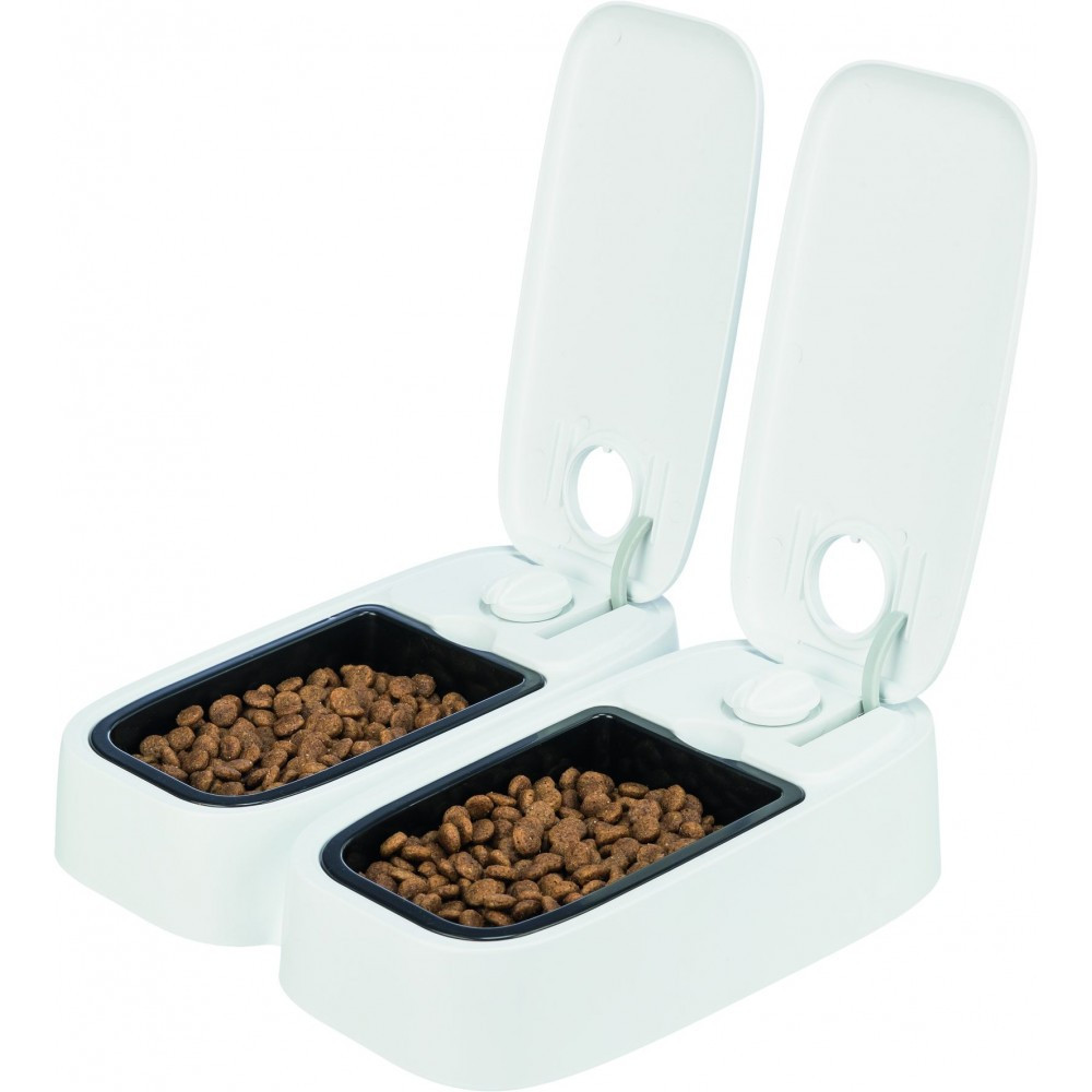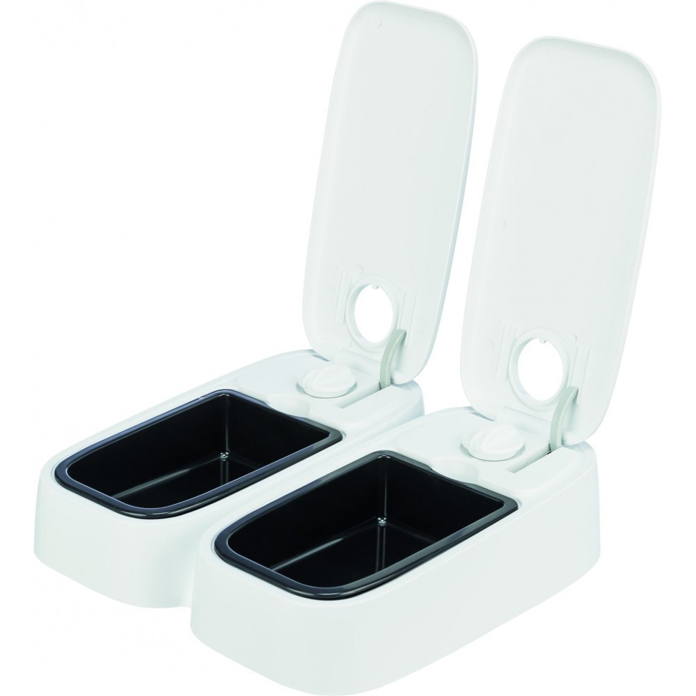 Годівниця автомат. “TX 1” 1*300мл/13*7*24см, представлена відомим німецьким виробником зоотоварів Тріксі – зручний та практичний пристрій для годування котів та собак. Наявність таймеру забезпечує автоматичне відкриття ємкості объемом 300 мл, через встановлений проміжок часу.Виготовлена годувальниця з безпечних для здоров’я тварин, матеріалів, що не містять у складі шкідливих речовин, оснащена 48 – ми годинним таймером. Підходить для вологого корму, за рахунок наявності акумулятору холоду, що йде в комплекті, і розміщений під ємністю для годування. Живлення отримує від батарейок типу АА.пластиктаймер автоматично відкриває кришку в заданий часдля двох порцій по 300 мл, може бути запрограмована для одночасного відкриття або в різний часмаксимальне значення таймера – 48 годинпідходить для вологого кормув комплекті:2 охолоджуючих пакета, що допомагають зберегти свіжість їжі, встановлюються під мискою з їжеюне ковзає завдяки гумовому покриттю на підставілегко очищаєтьсяпрацює від батарейок (2 батарейки АА Mignon, в комплект не входять)