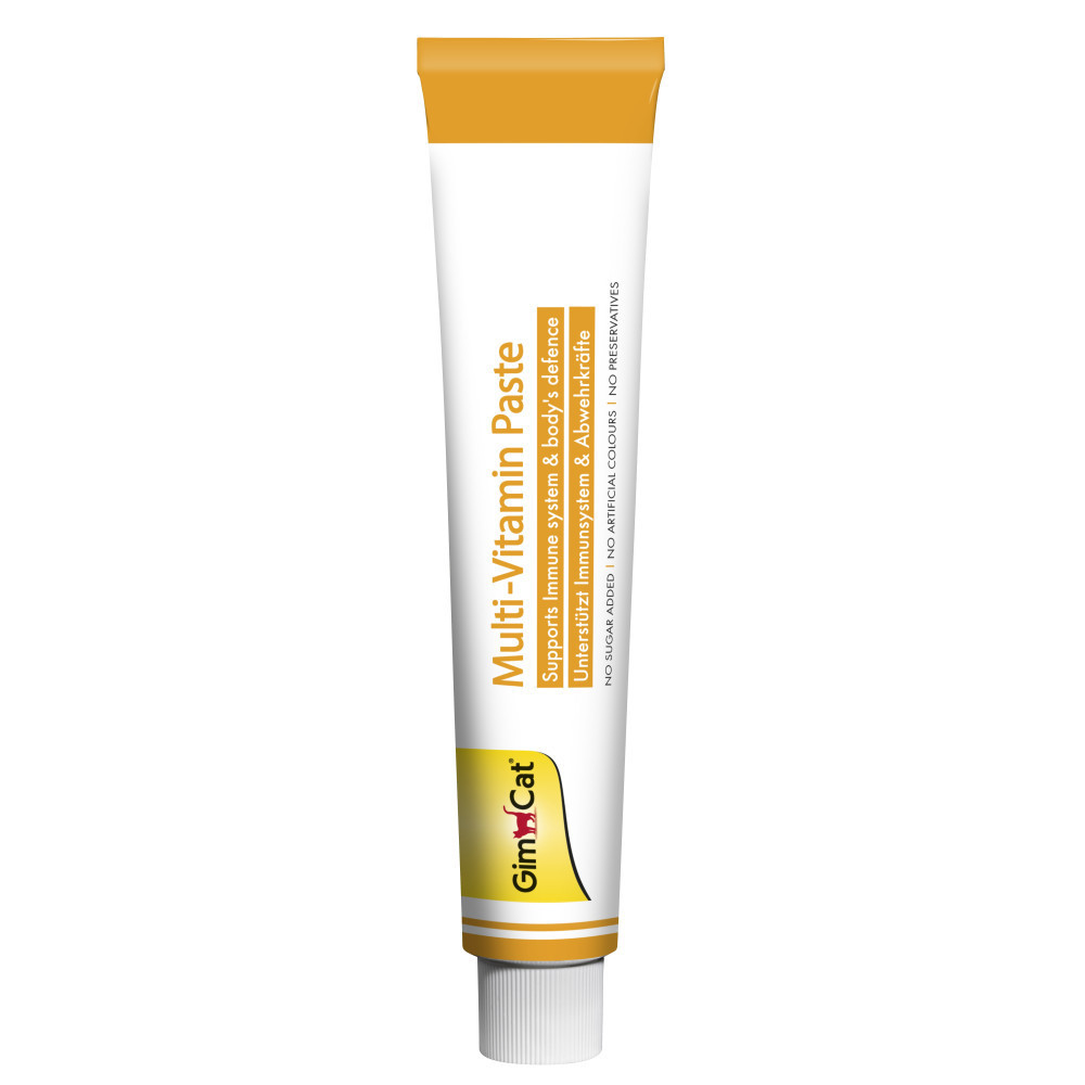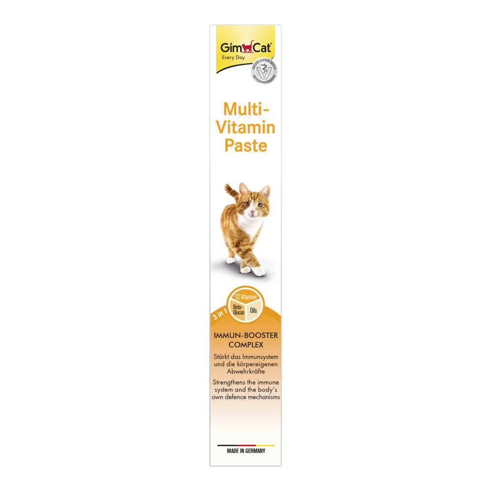 Паста GimCat Every Day Multi-Vitamin Paste для доповнення щоденного раціону і підтримки загального стану здоров’я котів.Паста містить унікальний комплекс 3-в-1, що включає 12 життєво важливих вітамінів, таурин, дріжджову культуру (містить 1% бета-глюкану) і біологічно цінні олії, які зміцнюють імунну систему і активізують захисні функції організму.Рекомендації щодо годування:6 см пасти на день, безпосередньо з тюбика або разом з кормом (1 см пасти = приблизно 0,5 г). Рекомендується використовувати добавку кімнатної температури. Тривалість застосування не обмежена.ГімКет Евері Дей Мультивітамін паста для котів призначена для дорослих котів всіх порід, не призначена для кошенят, не призначена для котів, які мають чутливість до одного або декількох інгредієнтів кормової добавки.Склад: рослинні субпродукти, олії та жири, дріжджі, похідні від молочного цукру.
