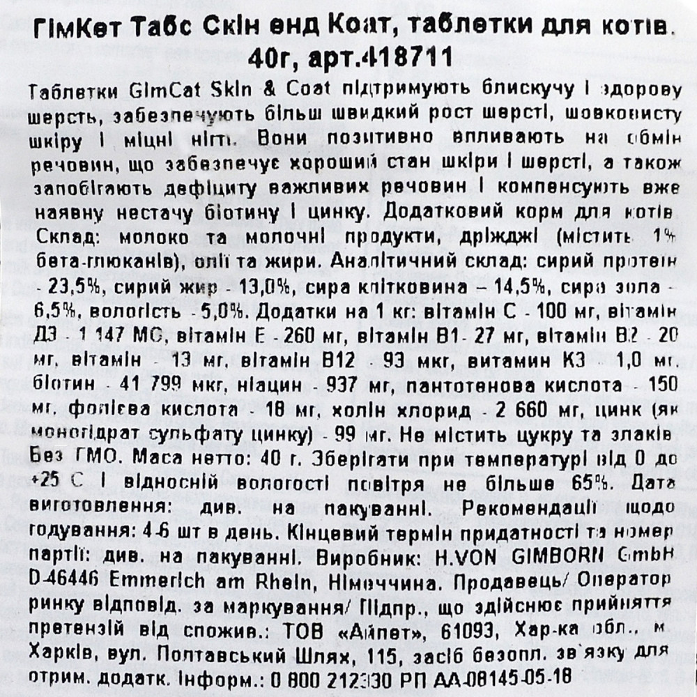 Вітаміни GimCat Every Day Skin and Coat таблетки для котів для покращення стану шерсті 40 г