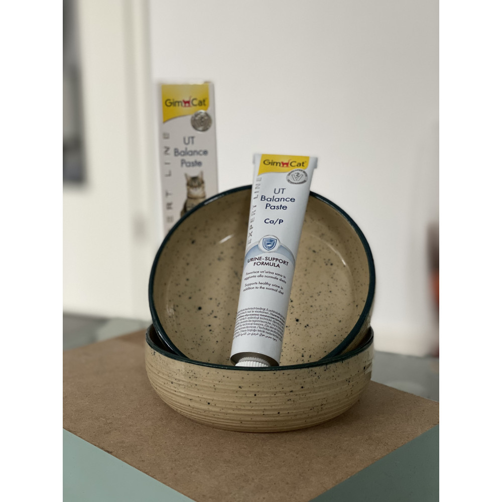 Вітамінна паста GimCat Expert Line UT Balance – ідеальний повноцінний захист сечовивідних шляхів. Паста має комплекс захисту сечовидільної системи для котів із порушеннями роботи нижніх сечових шляхів, незалежно від наявності каменів та їх типу.Це єдина паста, що підходить для запобігання утворення сечових каменів та зменшує вже наявні.Запобігає:Утворенню каменів струвіту та оксалатних каменівСтресу сечовивідних шляхівРозладів, що викликають утворення сечових каменівЯк паста може допомогти у захисті сечової системи?Ефективна проти каменів струвітуЕфективна проти оксалатних каменівБета-глюкан зміцнює імунну систему і допомагає вирішити проблеми з сечовими шляхамиПерша і єдина паста, яка протидіє обом типам сечових каменів!Склад: продукти рослинного походження, масла та жири, дріжджі, молюски та ракоподібні (N-ацетилглюкозамин 0,42%).Аналітичний склад:білки – 5,5%, жири – 34,0%, клітковина – 1,5%, зола – 4,5%, вологість – 12,5%. Добавки на 1000 г: L-триптофан – 12500 мг.Рекомендації по годівлі:Кожен день давати улюбленцю по 6 см пасти безпосередньо з тюбика або додаючи в корм (смужка пасти довжиною 1 см = приблизно 0,5 г).Не містить цукрів, барвників, консервантів.
