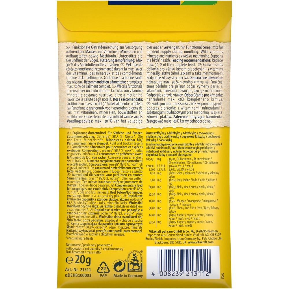 Вітамінізована добавка Vitakraft Mauserhilfe для хвилястих та екзотичних папуг під час ліньки у вигляді насіння 20 г