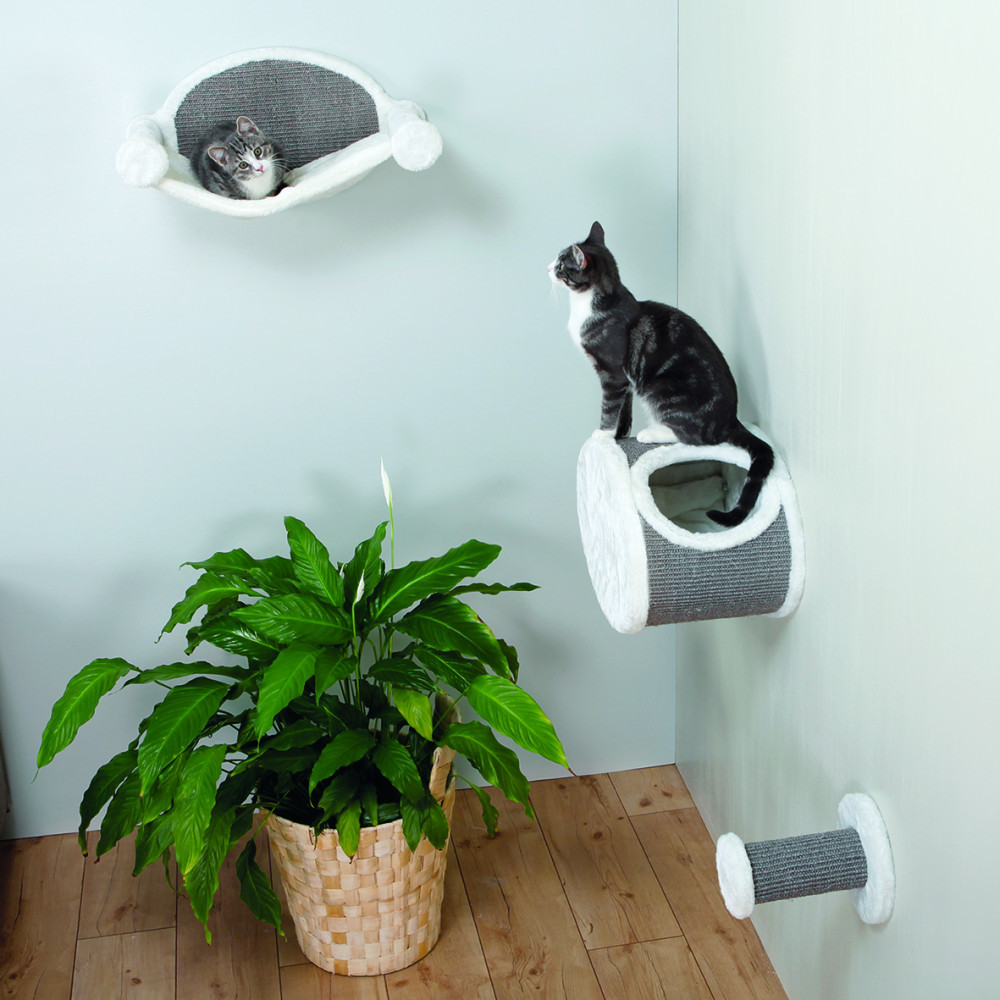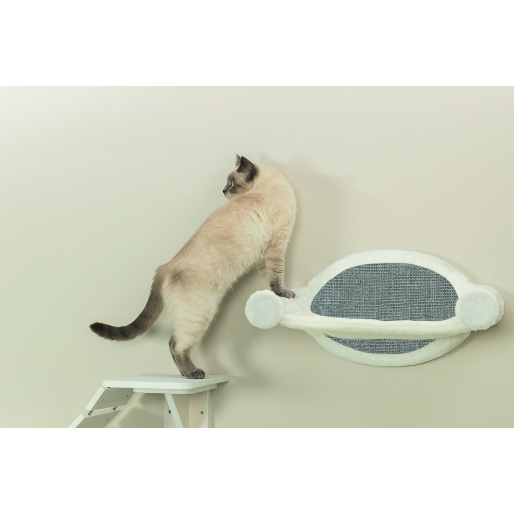 Гамак Trixie настінний – це зручний варіант для створення затишного місця відпочинку для вашого котика. Ось особливості гамака:Кріпиться на стіну – звільняє місце на підлозі та дозволяє вашому котику спостерігати за усім з висоти.М’який матеріал забезпечує комфортний сон та відпочинок для вашого улюбленця.Підходить для будь-якого інтер’єруЗадня сторона обшита плюшем (поліестер)Цей гамак може бути використаний як окремий елемент або, як елемент ігрового майданчика від Trixie.Матеріал: сизаль/плюш (поліестер): 280 г/м²Колір: білий/сірийРозмір: 54 × 28 × 33 см