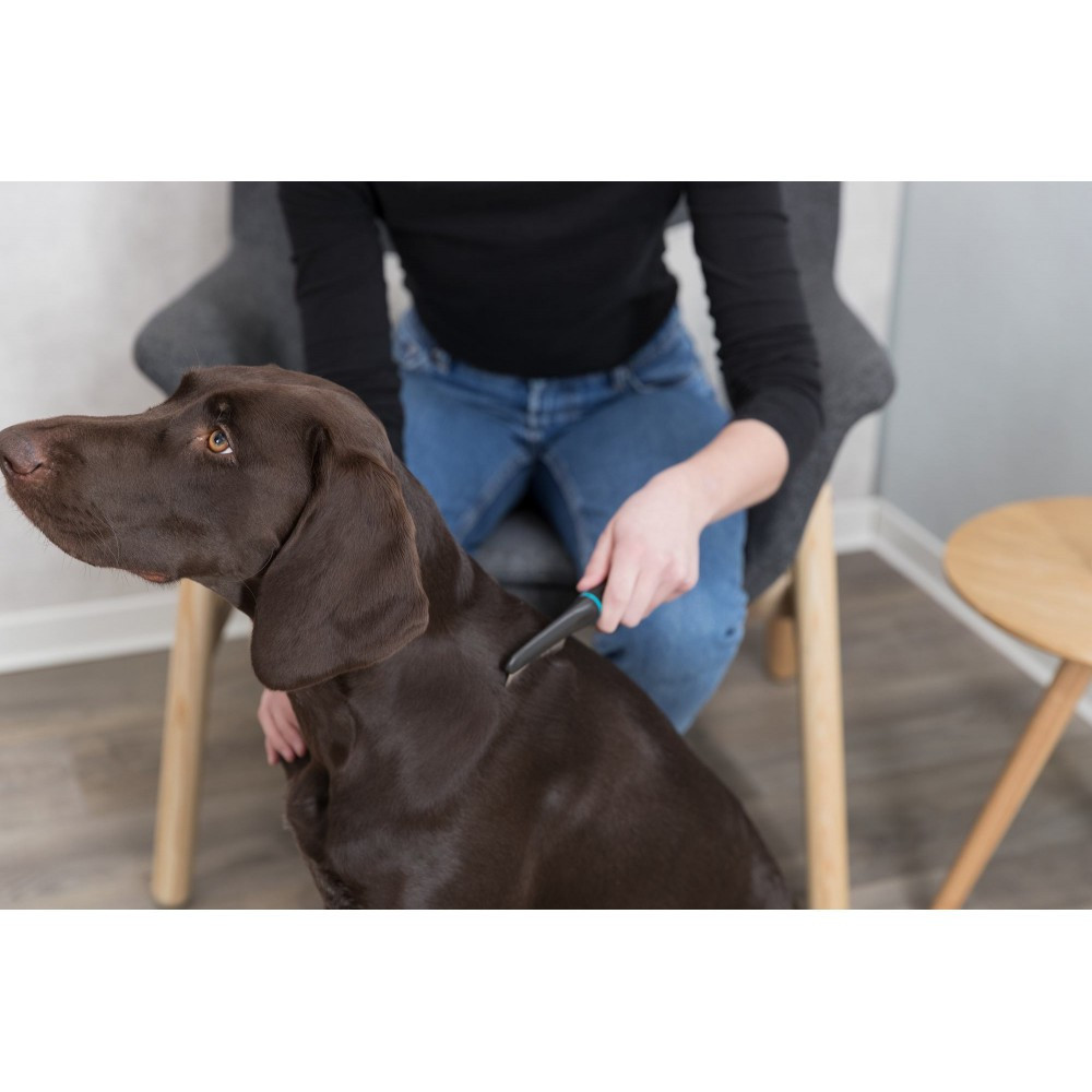 Гребінець Trixie проти бліх та бруду – незамінний інструмент для регулярного огляду та контролю наявності паразитів у шерсті вашого улюбленця.Головне призначення: інструмент розроблено для виявлення будь-яких паразитів, зокрема бліх, вошей та їх яєць.Ефективність: густо розташовані металеві зубці допомагають вичесати не лише комах, а й пил та лупу, сприяючи загальній чистоті шерсті.Комфорт і контроль: пластикова ручка з гумовою накладкою запобігає ковзанню, забезпечуючи надійний хват і точність при огляді шерсті.Універсальність: підходить для всіх типів шерсті: 1/2/3/4/5**Тип 1: Гладкошерста (Smooth Coat). Тип 2: Подвійна (Double Coat). Тип 3: Довга / Шовковиста (Long/Silky Coat). Тип 4: Жорстка(Wire Coat). Тип 5: Кучерява (Curly/Woolly Coat).Матеріал:пластикова ручка з гумовою рукояткою / метал.Довжина:21 см.