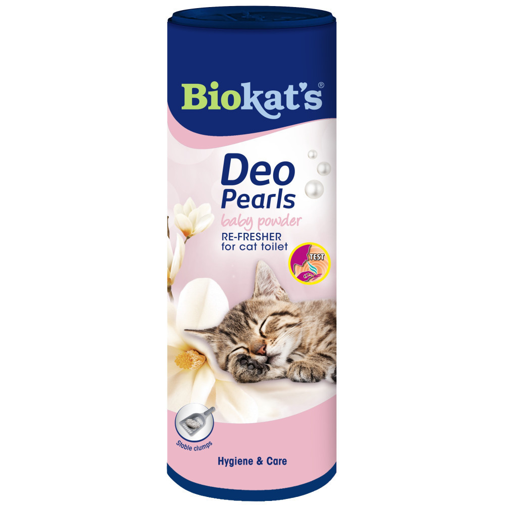 З дезодорантом Biokat’s DEO Baby powder ви можете освіжати котячий туалет на власний розсуд і так часто, як вам заманеться. Пориньте у світ ароматів: дитяча присипка зачарує вас чуттєвим запахом екзотичних ванільних есенцій!Deo Pearls миттєво вбирає неприємні запахи та запобігає їхній появі. Він також посилює грудкування, а отже, дає можливість використовувати звичайний котячий наповнювач довше.Рекомендоване дозування:розподіліть однорідним тонким шаром по наповнювачу.