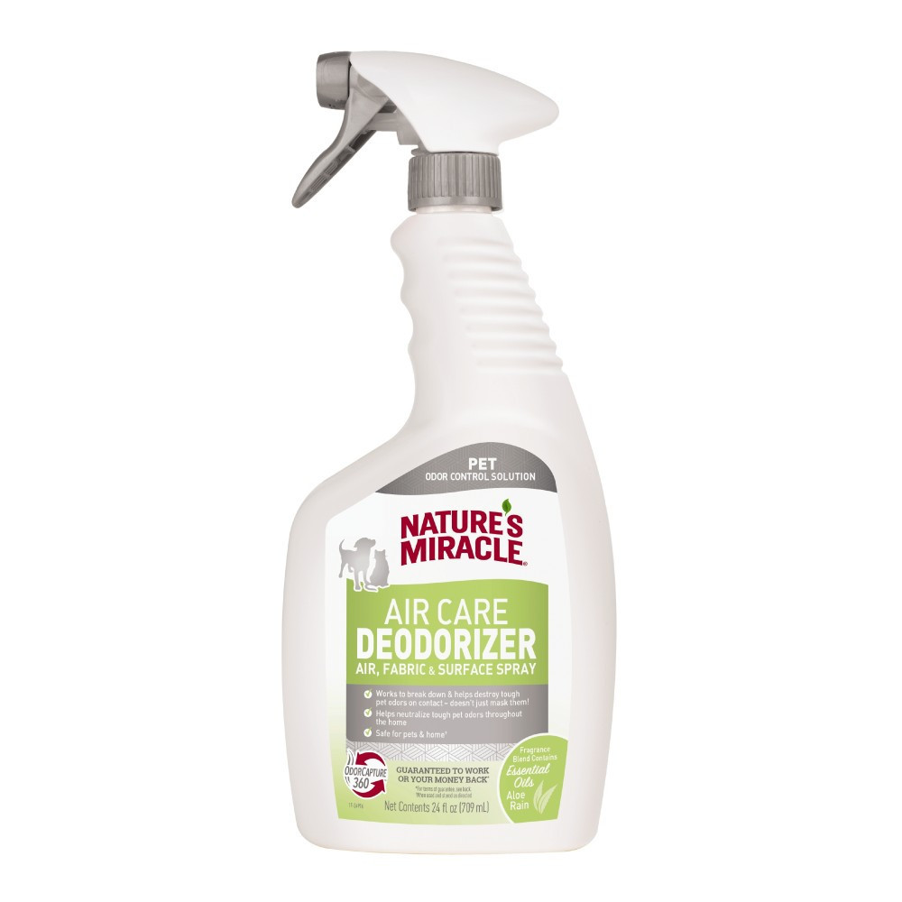 Життя з домашніми улюбленцями має свій запах. На жаль, не завжди приємний. Але з поганими запахами можна справитися. Ефективно це зробить дезодорант від Nature’s Miracle. На відміну від багатьох продуктів, які можуть просто маскувати неприємні запахи хатніх вихованців, дезодорант Nature’s Miracle розроблений на основі технології контролю запахів OdorCapture 360, що працює, щоб розкладати та знищувати стійкі запахи домашніх улюбленців. Крім того, він містить суміші ароматів з ефірних олій, щоб залишати приємний аромат свіжості алое.Допомагає нейтралізувати різкі запахи домашніх вихованців, а не просто маскує ароматом.Працює у повітрі та на тканинах і твердих поверхнях.Виготовлений із суміші ароматів, що містить ефірні олії.Створений з використанням технології нейтралізації запаху ODORCAPTURE 360™.Безпечний для домашніх улюбленців і всередині будинку.Інструкція з використанні.Щоб нейтралізувати запахи домашніх улюбленців розпиліть у повітрі або на поверхні: тканини, тверді поверхні, включаючи килими, підлогу та інші місця по всьому будинку.Безпечний для домашніх улюбленців і оселі, за умови використанні та зберіганні згідно з інструкціями. Не використовувати на домашніх улюбленцях.Склад: вода, олефін сульфонат натрію (C14-16), сополімер акрилоїлдиметилтаурат натрію/цинку/ітаконату, N-соєвий-N-етилморфоліній етосульфат, ароматизатори, сульфат натрію, поліолефін (C14-16), хлорид натрію, гідроксид натрію, сорбат калію, нітрат магнію, метилізотіазолінон, хлорид магнію, метилхлорізотіазолінон.