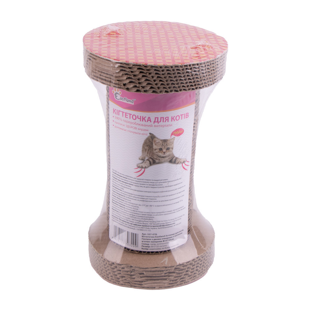 Хвилюєтеся за долю меблів чи шпалер, обираєте іграшку, якою точно буде гратися ваш улюбленець, чи вашому котику просто потрібна дряпка?Зупиніть свій вибір на дряпці Eastland. Вона виготовлена з гофрокартону, що так люблять дряпати улюбленці, а її форма дасть можливість котику гратися дряпкою, перекочуючи її з місця на місце.Розмір:d 15 x 25 cм.Матеріал:гофрокартон.