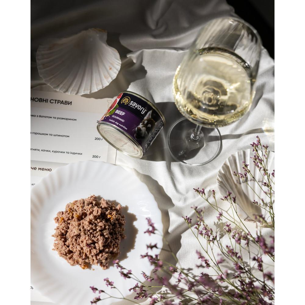 Повнораціонний вологий корм для дорослих собак Savory з яловичиною. Корм для собак Savory пробудить у вашого улюбленця ту життєву енергію, про яку він навіть сам ще не знав.Ексклюзивна рецептура корму була розроблена досвідченими європейськими спеціалістами з харчування домашніх улюбленців. Використовуючи холістичний підхід, вдалося створити біологічно відповідний, здоровий раціон для собак, який є корисним і смачним настільки, що лапки оближеш. Поєднання добірних натуральних інгредієнтів дає можливість піклуватися про здоров’я чотирилапого, а вишуканий смак – дарувати йому насолоду від щоденного споживання корму Savory.Переваги:Високий відсоток вмісту м’яса: корм легко засвоїться, забезпечивши організм улюбленця максимумом поживних речовин.Пребіотик інулін нормалізує процеси травлення у чотирилапого, зміцнюючи імунну систему.Яловичина – цінне джерело білків, яке надає корму неперевершеного смаку.Без глютену.Не містить штучних барвників і штучних ароматизаторів – підхід «NafNac».Особливості:Яловичина – це джерело білків і амінокислот, завдяки яким песик буде бадьорим і чудово себе почуватиме.Яловичі серця – насичують організм вітамінами групи В і залізом.Горох повільно вивільняє енергію, що дає відчуття ситості чотирилапому. Ще ця бобова культура багата протеїнами, які необхідні для розвитку і підтримки мускулатури у відмінному стані.Солодка картопля – це складні вуглеводи, які надовго втамовують голод, та клітковина для нормальної роботи кишечника.Зі шпинату собака отримує антиоксиданти для здоров’я серця і суглобів, красивої шерсті, а вітаміни групи В нормалізують процеси метаболізму.Корм Savory – корисне може бути смачним!Склад: яловичина (55%), яловичі серця (14%), горохове борошно, горох (2%), солодка картопля (2%), лігноцелюлоза (органічна клітковина), карбонат кальцію, сушений шпинат (0,2%), сушений розмарин (0,1%), пребіотик інулін (0,1%).Аналітичний склад:сирий білок 9,0%, сирий жир 7,0%, сира зола 2,0%, вологість 75,0%, клітковина 1,0%Харчові добавки на 1 кг:вітамін D3 (3а671) 250 МО, вітамін Е (3а700) 120 мг, біотин (3а880) 0,3 мг, цинк (3b606) 12 мг, залізо (3b106) 10 мг, марганець (3b504) 1,5 мг, йод (3b201) 0,5 мг, мідь (3b406) 0,5 мг, кальцій (Ca) 0,4%, фосфор (P) 0,3%, натрій (Na) 0,5%.Енергетична цінність:1215 ккал/кг.Вага улюбленцяНорма паштету при харчуванні лише вологим кормом (грамів паштету на день)Норма паштету при комбінованому харчуванні із сухим кормом (грамів паштету на день)2.5 кг180905 кг30015010 кг45022520 кг80040030 кг100050040 кг120060050 кг140070060 кг160080070 кг1800900*норми годування є середньостатистичними, та можуть корегуватися на +-20% в залежності від активності улюбленця, метаболізму та температур навколишнього середовища