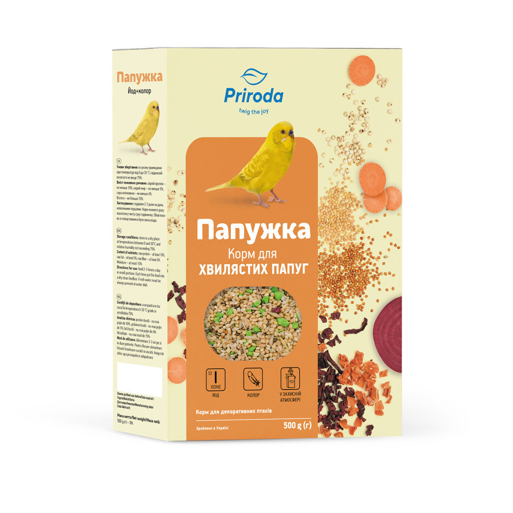 Корм Природа Папужка Йод колор для хвилястих папуг 500 г