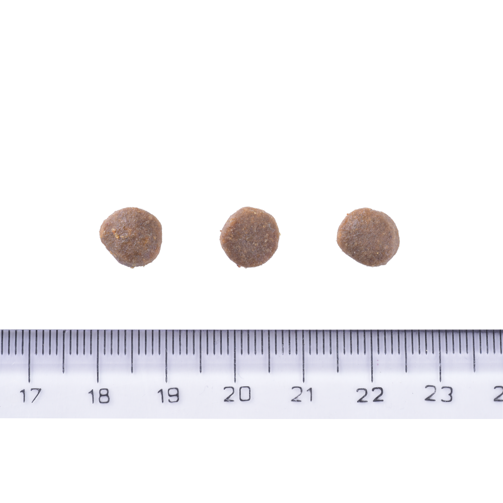 Беззерновий корм суперпреміум класу для здорового розвитку та імунітету цуценят усіх порід (4 тижні – 12 місяців). Також підходить для змішування з молоком. Містить високопоживні білки і жирні кислоти для підтримки здоров’я шкіри та шерсті, розумової здатності та ідеального стану тіла.Беззернова формула ідеальна для собак з особливим доглядом за шерстю, улюбленцям, яким потрібно підтримувати оптимальний фізичний стан, та собакам з побічною реакцією на інші види кормів. Жирні кислоти відіграють важливу роль у здоровому розвитку цуценят та молодих собак.Здоровий ріст і розвиток.Ідеальне співвідношення калорій, кальцію і фосфору для правильного та здорового зростанняМ’язи.Багатий на Омега-3 для посилення синтезу м’язів та швидкого відновленняІмунітет.Пробіотики та антиоксиданти зміцнюють імунну систему та підтримують здоров’я органів травленняСклад:лосось (55%) (дегідрований лосось, гідролізований лосось), картопля (26%), курячий жир, лососева олія (3%), сушена яблучна м’якоть, натуральний ароматизатор, пивні дріжджі, гідролізовані дріжджі (0,5% – джерело інозиту та амінокислот), горохове борошно, глюкозамін (300 мг/кг), фруктоолігосахариди (230 мг/кг), хондроїтину сульфат (230 мг/кг), мананолігосахариди (180 мг/кг), юка Мохаве (180 мг/кг), насіння розторопші (110 мг/кг), β-глюкани (60 мг/кг), пустирник сушений (60 мг/кг), сушена обліпиха (60 мг/кг), пробіотик Lactobacillus helveticus HA – 122 інактивовані (15×109 клітин/кг).Аналітичний склад:сирий протеїн 30,0%, сирий жир 18,0%, вологість 10,0%, сира зола 7,0%, сира клітковина 2,5%, кальцій 1,2%, фосфор 0,9%, натрій 0,5%, омега-3 жирні кислоти 1,3%, омега-6 жирні кислоти 2,3%, EПК (20:5 n-3) 0,12%, ДГК (22:6 n-3) 0,16%.Харчові добавки на 1 кг: вітамін А (3a672a) 23000 МО, вітамін D3 (3a671) 1700 МО, вітамін Е (3a700) 550 мг, вітамін С (3a312) 350 мг, таурин (3a370) 1500 мг, холіну хлорид (3a890) 1800 мг, L-карнітин (3a910) 300 мг, вітамін B1 (3a821) 3 мг, вітамін B2 (3a825i) 11 мг, біотин (3a880) 4 мг, фолієва кислота (3a316) 1,4 мг, вітамін B6 (3a831) 3 мг, кальцію-D-пантотенат (3a841) 30 мг, ніацинамід (3a315) 38 мг, вітамін B12 0,12 мг, йод (3b201) 0,9 мг, органічний цинк (3b606) 100 мг, органічний марганець (3b504) 45 мг, органічна мідь (3b406) 20 мг, органічне залізо (3b106) 88 мг, органічний селен (3b810) 0,18 мг. Містить схвалені ЄС антиоксиданти: екстракти токоферолу з рослинної олії (1b306(i)), аскорбілпальмітат (1b304) та екстракт розмарину.Енергетична цінність:3930 ккал/кг.Вікцуценяти,місяціВага дорослої собаки, кг51015202530405060708090Добова норма, г1-350851151401501701802102402602803103-475120160180Молода велика порода4-6751301752206-1270120170210