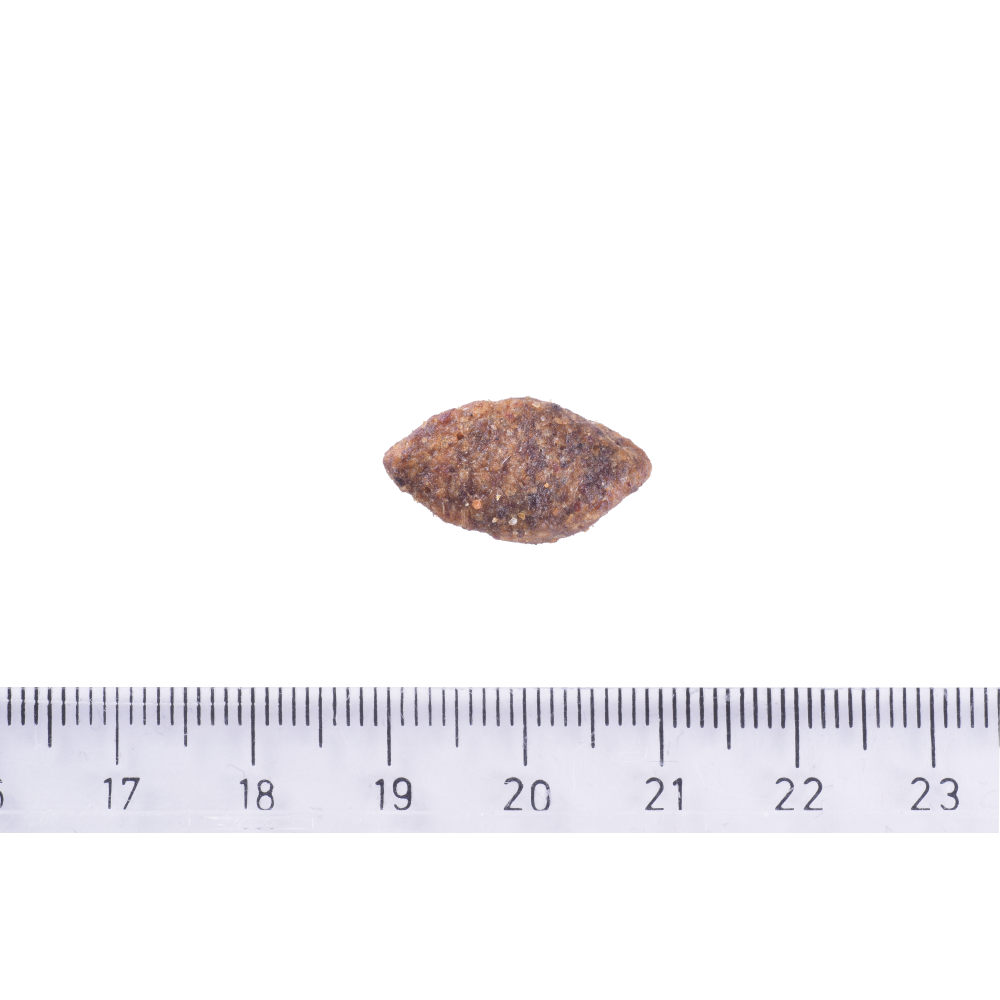 Беззерновий корм суперпреміум класу спеціально для собак з чутливим травленням і харчовою непереносимістю. Протеїн оленини зменшує ризик виникнення харчової алергії або чутливості шкіри.Розторопша підтримує функцію печінки та допомагає протистояти запаленням травлення та шкіри. Жирні кислоти омега-3 такі, як АЛК, EПК та ДГК, підвищують рівень зволоження шкіри, сприяють здоровій та блискучій шерсті. Ідеально для собак з побічною реакцією на інші види кормів.Без курячого жиру.Формула на основі оленини для запобігання алергічних реакційШкіра та шерсть.Велика кількість Омега-3 для блискучої шерсті та здорової шкіриІмунітет.Пробіотики та антиоксиданти зміцнюють імунну систему та підтримують здоров’я органів травленняСклад:дегідрована оленина (36%), картопля (30%), кокосова олія, сушена м’якоть яблука, лососева олія (5%), насіння льону (4%), пивні дріжджі, горохове борошно, глюкозамін (300 мг/кг), фруктоолігосахариди (230 мг/кг), хондроїтину сульфат (230 мг/кг), мананолігосахариди (180 мг/кг), юка Мохаве (180 мг/кг), насіння розторопші (110 мг/кг), β-глюкани (60 мг/кг), пустирник сушений (60 мг/кг), обліпиха сушена (60 мг/кг), пробіотик Lactobacillus helveticus ГК – 122 інактивовані (15х109 клітин/кг).Аналітичний склад:сирий протеїн 25,0%, сирий жир 14,0%, вологість 10,0%, сира зола 8,5%, сира клітковина 3,0%, кальцій 1,7%, фосфор 1,2%, натрій 0,2%, омега-3 жирні кислоти 1,0%, омега-6 жирні кислоти 0,8%, EПК (20:5 n-3) 0,06%, ДГК (22:6 n-3) 0,12%.Харчові добавки на 1 кг:вітамін А (3a672a) 23000 МО, вітамін D3 (3a671) 1700 МО, вітамін Е (3a700) 550 мг, вітамін С (3a312) 350 мг, таурин (3a370) 1500 мг, холіну хлорид (3a890) 1800 мг, L-карнітин (3a910) 300 мг, вітамін B1 (3a821) 3 мг, вітамін B2 (3a825i) 11 мг, біотин (3a880) 4 мг, фолієва кислота (3a316) 1,4 мг, вітамін B6 (3a831) 3 мг, кальцію-D-пантотенат (3a841) 30 мг, ніацинамід (3a315) 38 мг, вітамін B12 0,12 мг, йод (3b201) 0,9 мг, органічний цинк (3b606) 100 мг, органічний марганець (3b504) 45 мг, органічна мідь (3b406) 20 мг, органічне залізо (3b106) 88 мг, органічний селен (3b810) 0,18 мг. Містить схвалені ЄС антиоксиданти: екстракти токоферолу з рослинної олії (1b306(i)), аскорбілпальмітат (1b304) та екстракт розмарину.Енергетична цінність:3640 ккал/кг.Вага собаки, кгДобова норма, г5851014015180202302527030310403805044060510705708063090680