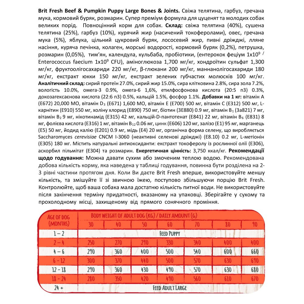 Корм сухий Brit Fresh Beef/Pumpkin Puppy Large для цуценят та молодих собак великих порід з яловичиною та гарбузом 12 кг