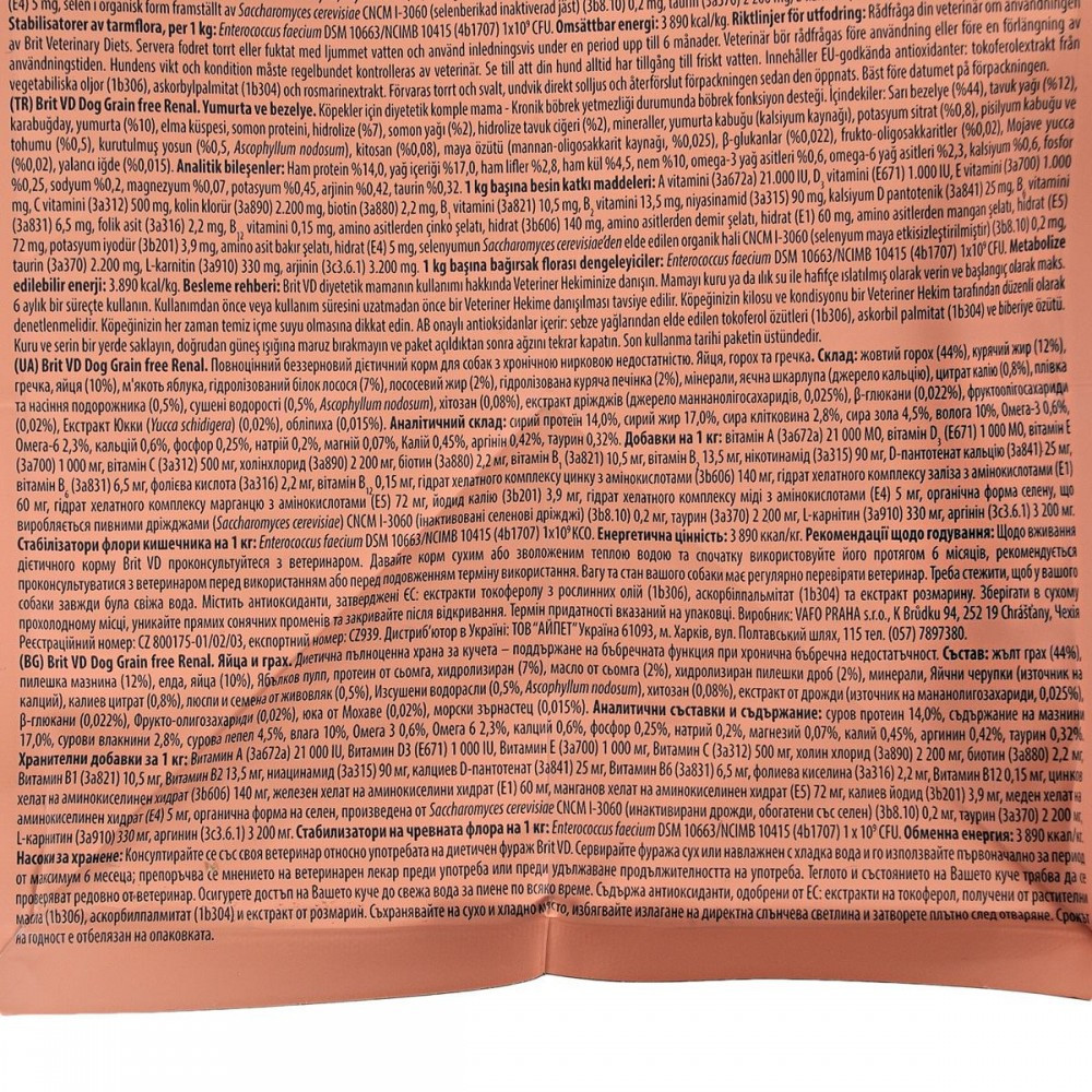 Корм сухий Brit Grain Free VetDiet Dog Renal для собак з нирковою недостатностью з яйцем горохом та гречкою 2 кг