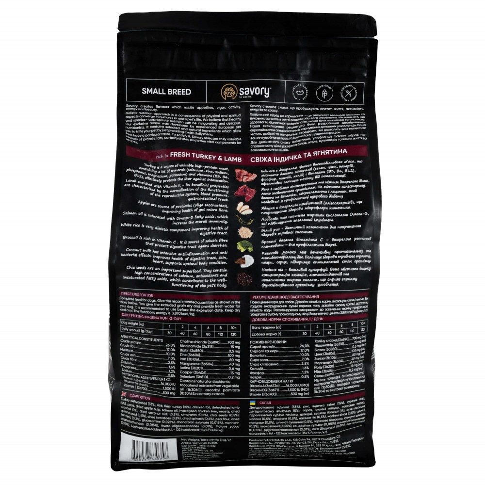 Корм сухий Savory Small Breed rich in Fresh Turkey and Lamb для дорослих собак малих порід до 10 кг зі свіжим ягням…