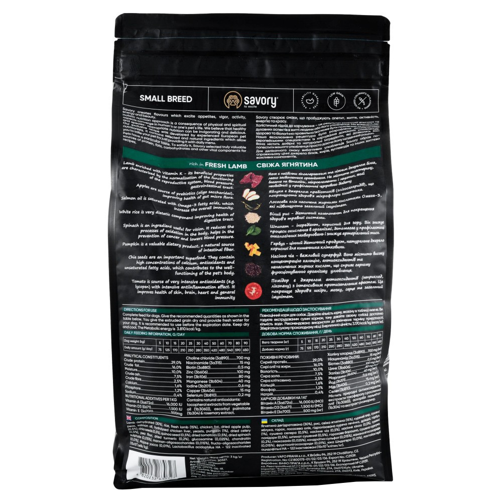 Корм сухий Savory Small Breeds rich in Fresh Lamb для дорослих вибагливих собак малих порід до 10 кг зі свіжим ягням…