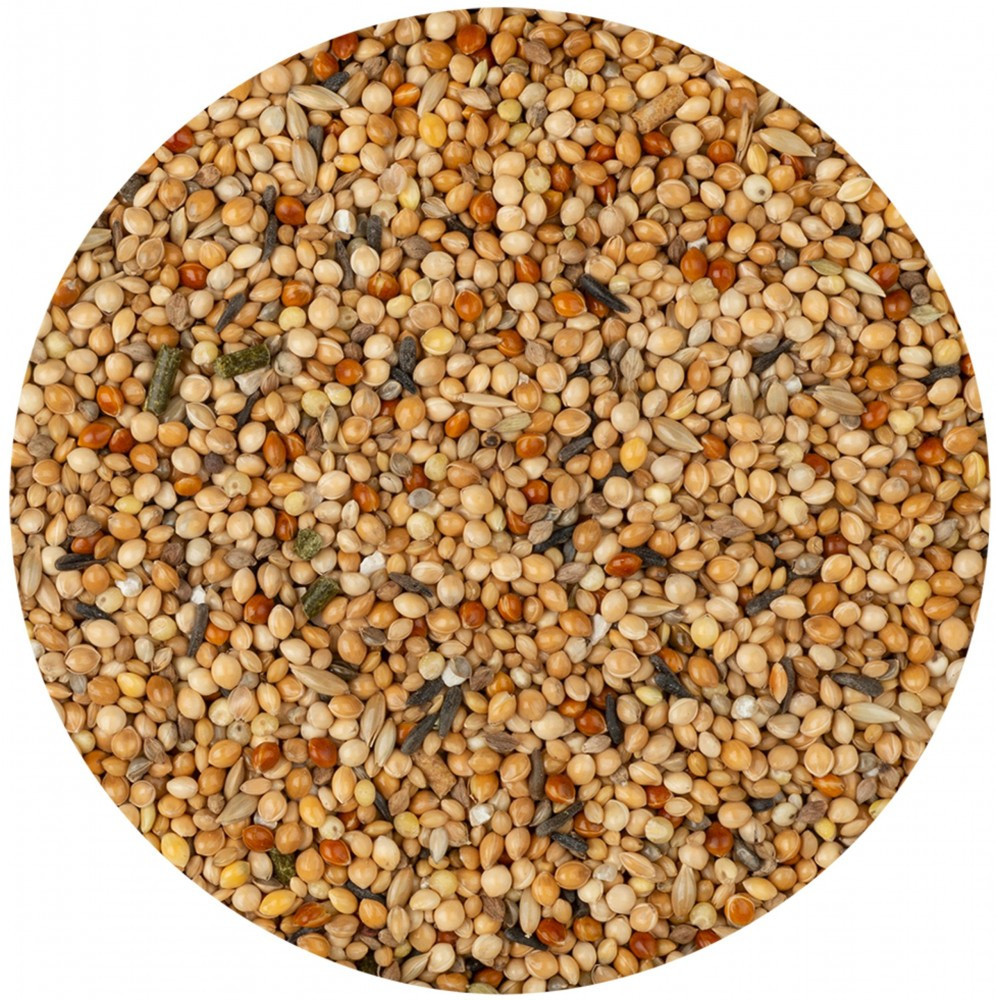 Vitakraft Menu для амадин – збалансована основа харчування, яка містить усі важливі поживні речовини і мінеральні елементи для оптимальної кондиції вашого птаха. Комплекс Vital з йодом запобігає дефіциту вітамінів і мінералів та забезпечує довголіття вашому улюбленцю.Високоякісні зернові, насіння – ідеально підходять для задоволення основних потреб екзотичних птахів у харчуванні. Всі основні вітаміни, мінерали та мікроелементи сприяють оптимальному стану птаха, а корисний мед покращує смак корму.Комплекс Vital з йодом: Перевірений часом комплекс забезпечує організм птаха оптимальною кількістю йоду, мінералами та іншими мікроелементами. Сприяє обміну речовин.Вітаміни: Ідеально збалансований вміст основних вітамінів запобігає авітамінозу і сприяє відмінній кондиції птахів.Комплекс Immun Aktiv: Бета-глюкани зміцнюють і активізують імунну систему птахів.Здорові кістки: Оптимальне співвідношення кальцію і фосфору підтримує здорову структуру кісток.Не містить цукру, барвників, консервантів і ароматизаторів. Упаковка з зіп-локом зберігає свіжість корму.Склад: зернові* (пшоно 90%), насіння* (канаркове насіння 4%, нуг абіссінський 1,9%), мінеральні речовини*, петрушка сушена* 0,5%, чебрець сушений* 0,25%, подорожник сушений* 0,25%, олії та жири, дріжджі (бета-глюкани 80 мг/кг), * = натуральні інгредієнтиПоживні речовини:кальцій – 0,8%, фосфор – 0,4%Добавки на 1 кг:6000 МО 3a672a вітамін A600 МО 3a671 вітамін D34,97 мг 3b201 йод20,04 мг 3b605 цинк39,98 мг 3b503 марганецьРекомендації з годування: Давати щодня 1-2 чайні ложки (10 г).
