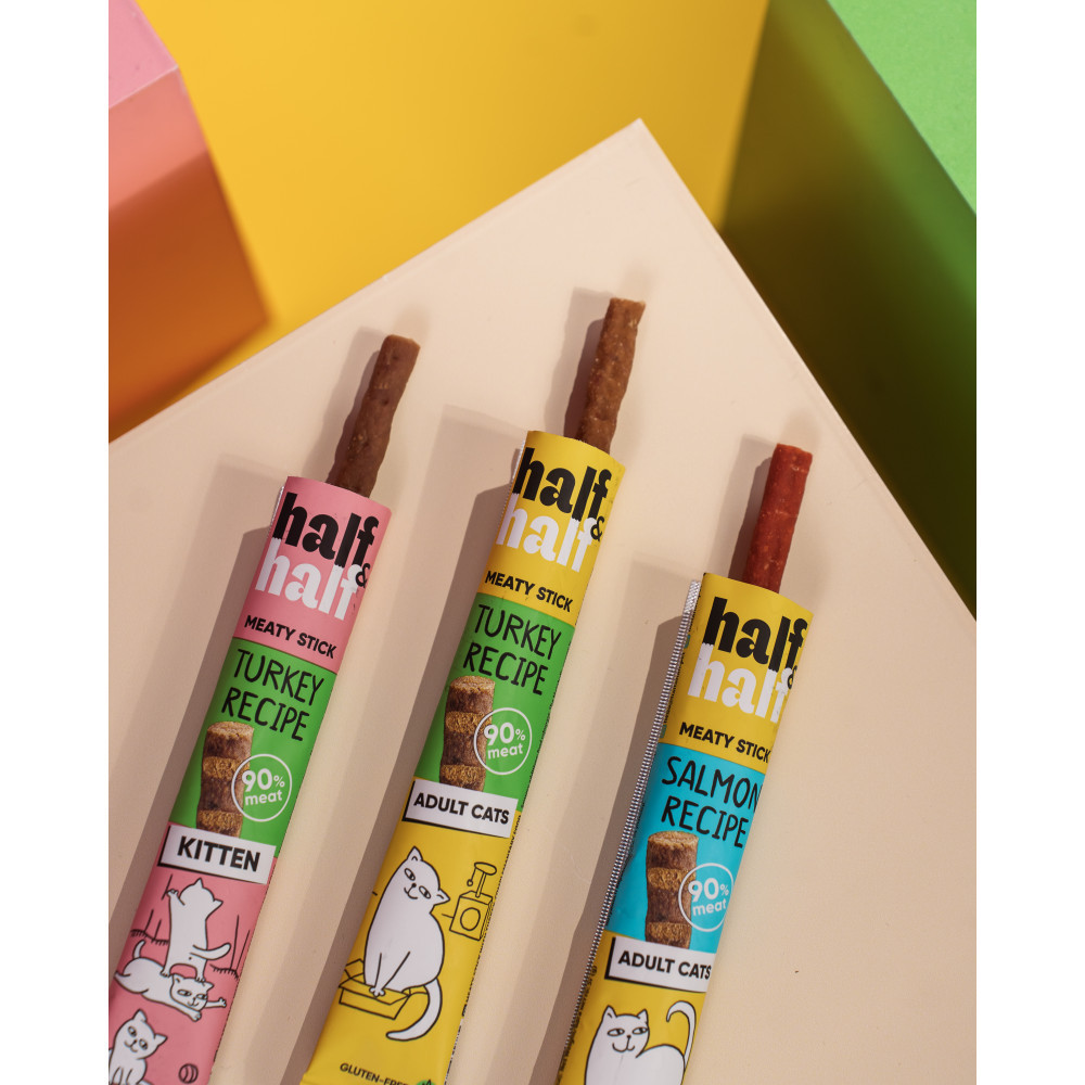 Додатковий корм для дорослих котів.Беззернові натуральні ласощі з м’ясом – ідеальне доповнення до основного раціону котика.М’яка та соковита текстура дозволяє як розламувати паличку на дрібніші шматочки, так і давати її цілком.Легкозасвоювані білки не навантажують систему травлення та чудово смакують.Курка з індичкою оптимальні для смачного перекусу та здоров’я улюбленця.Не містить злаків та глютеновмісних Cкладових – безпечні для котів із непереносимістю глютену.Без ГМО.Cклад: м’ясо та м’ясні інгредієнти (90 %, з яких 75 % курки, 15 % індички), рисове борошно, гліцерин харчовий, мінеральні речовини. Не містить ГМО.Поживні речовини:сирий білок – 26,0 %, сирий жир – 6,7 %, сира клітковина – 1,0 %, вологість – 21,0 %, сира зола – 3,0 %.Харчові добавки:вітамін А (3а672а) – 2.200 МО, вітамін D3 (3а671) – 500 МО, вітамін Е (3а700) – 15 мг. Технологічні добавки: антиоксиданти. Сенсорні добавки: харчовий барвник.Енергетична цінність:2,520 ккал/ 1 кг.
