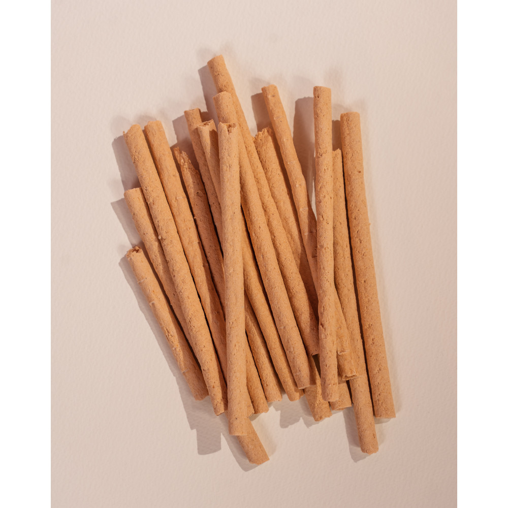 Додатковий корм для собак.М’ясні ласощі – ідеальне доповнення до основного раціону собаки.М’яка та соковита текстура дозволяє як розламувати паличку на дрібніші шматочки для мініатюрних порід, так і давати її цілком для більших собачок.Легкозасвоювані білки не навантажують систему травлення та чудово смакують.Курятина оптимальна для смачного перекусу, виховання, заохочення песика.Пшеничні висівки дуже корисні для детоксикації кишечника та покращення засвоєння поживних речовин.Без ГМО.Cклад: м’ясо та м’ясні інгредієнти (70 %, зокрема курка 40 %), пшеничні висівки, гліцерин харчовий, мінеральні речовини. Не містить ГМО.Поживні речовини:сирий білок – 26,5 %, сирий жир – 6,7 %, сира клітковина – 1,0 %, вологість – 21,0 %, сира зола – 3,5 %.Харчові добавки:вітамін А (3а672а) – 880 МО, вітамін D3 (3а671) – 500 МО, вітамін Е (3а700) – 15 мг, мідь (3b406) – 2,6 мг. Технологічні добавки: антиоксиданти.Енергетична цінність:2,560 ккал/ 1 кг.