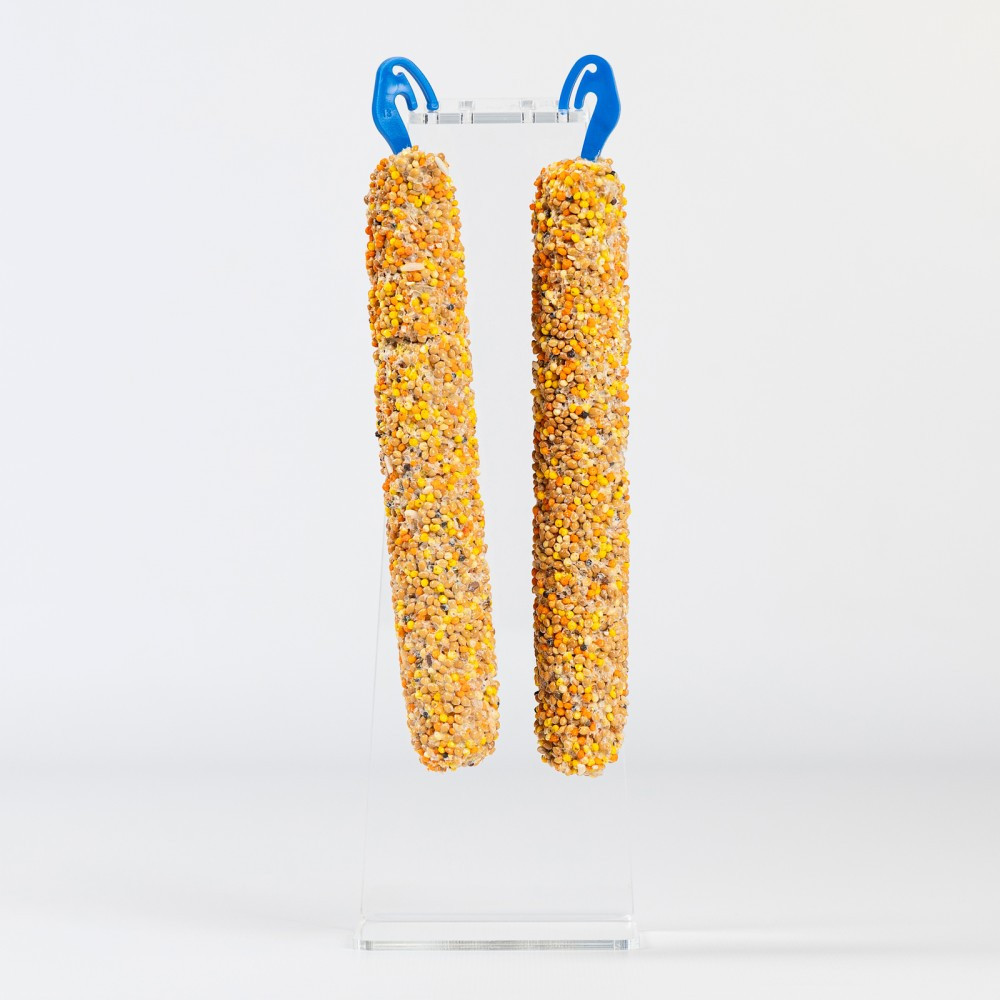 Повноцінні вітамінізовані ласощі мають високу поживну цінність і смакові якості завдяки спеціальній технології обробки інгредієнтів. Склад колосків наближений до їжі папуг в природних умовах. Добірні зерна забезпечують птахів енергією.Сушені за спеціальною технологією овочі та фрукти зберігають максимальну кількість корисних речовин. Ласощі позитивно впливають на травлення птахів, а це забезпечує чудову кондицію і рухливість.Зерно проходить мінімальну термічну обробку, тому має натуральній смак та зберігає цінні мікро- та макроелементи. Використовується щадна технологія формування. Зерна і ласощів закріплюються на дерев’яній основі за допомогою борошняної суміші без додавання хімічних речовин та крохмалю.Склад: насіння льону, овес голозерний, рапс, просо, ячмінь, пшениця, рис, пшоно.Добавки: питна вода, борошно пшеничне, натуральний харчовий барвник