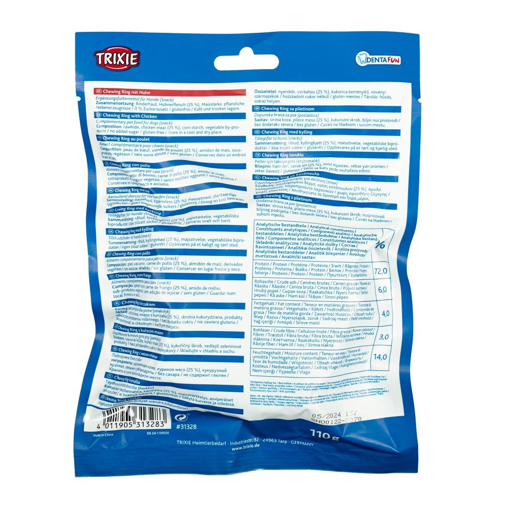 Ласощі Trixie Denta Fun для собак Кільце для чищення зубів з куркою 10 см 110 г