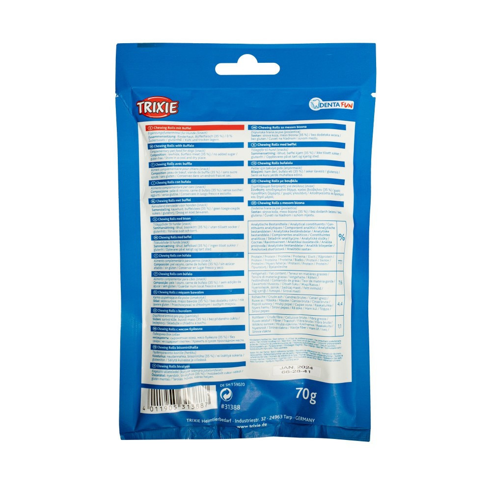 Жувальні палички Trixie Denta Fun для собак – прекрасний вибір господарів, що піклуються про здоров’я своїх чотирилапих вихованців.Монопротеїнова закуска, особливо підходить для собак з кормовою алергієюСиром’ятна шкіра, загорнута в м’ясо буйволаФормула без глютенуБез додавання цукруСклад: шкіра буйвола, м’ясо буйвола (35%)Аналітичний склад: жир 7,6%, протеїн 77,1%, сира зола 4,4%, сира клітковина 1,1%Рекомендації з годування:давати як добавку до основного корму, залежно від розміру улюбленця, але не більше, ніж 10% від його денного раціону.Розміри: 12 смВміст/Вага: 5 шт./70 г