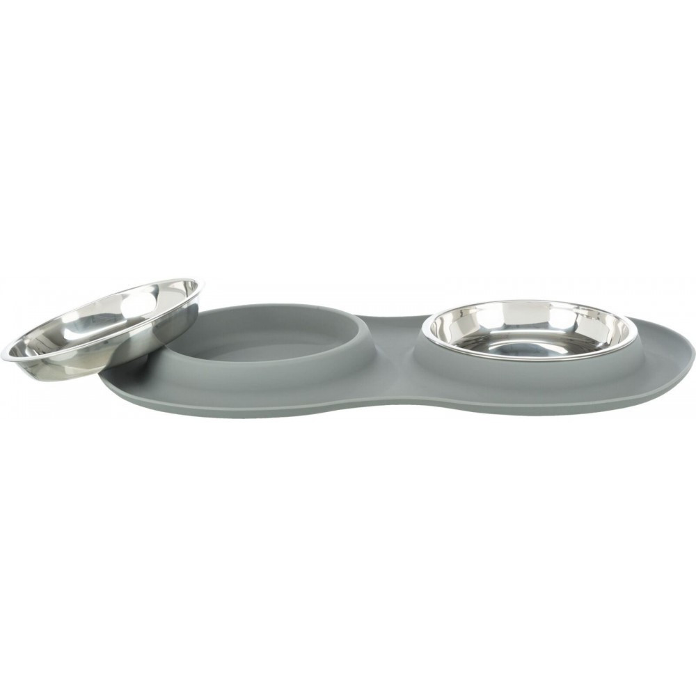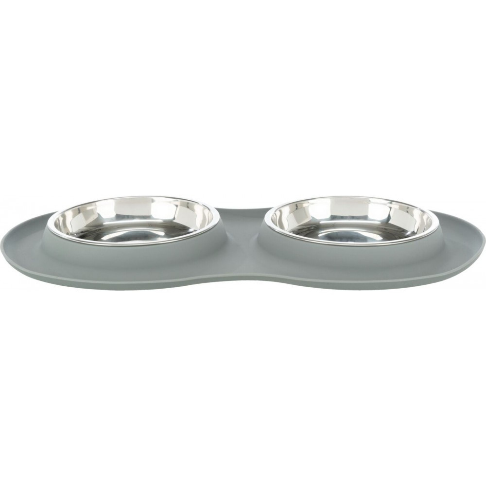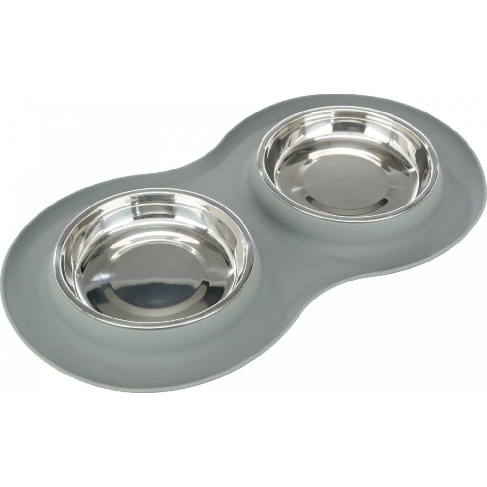 Комплект Trixie із 2-ох мисок – це дуже практичне рішення, адже у вашого котика відразу з’являється посуд і для води, і для їжі. Силіконова основа не дозволяє мискам перевертатися чи ковзати по підлозі та полегшує підтримувати чистоту на місці для годування. Миски неглибокі.Зручний, якісний і стильний комплект!Матеріал: нержавіюча сталь, силіконРозмір: 0,3 л/d 16 см/47 × 3 × 26 см