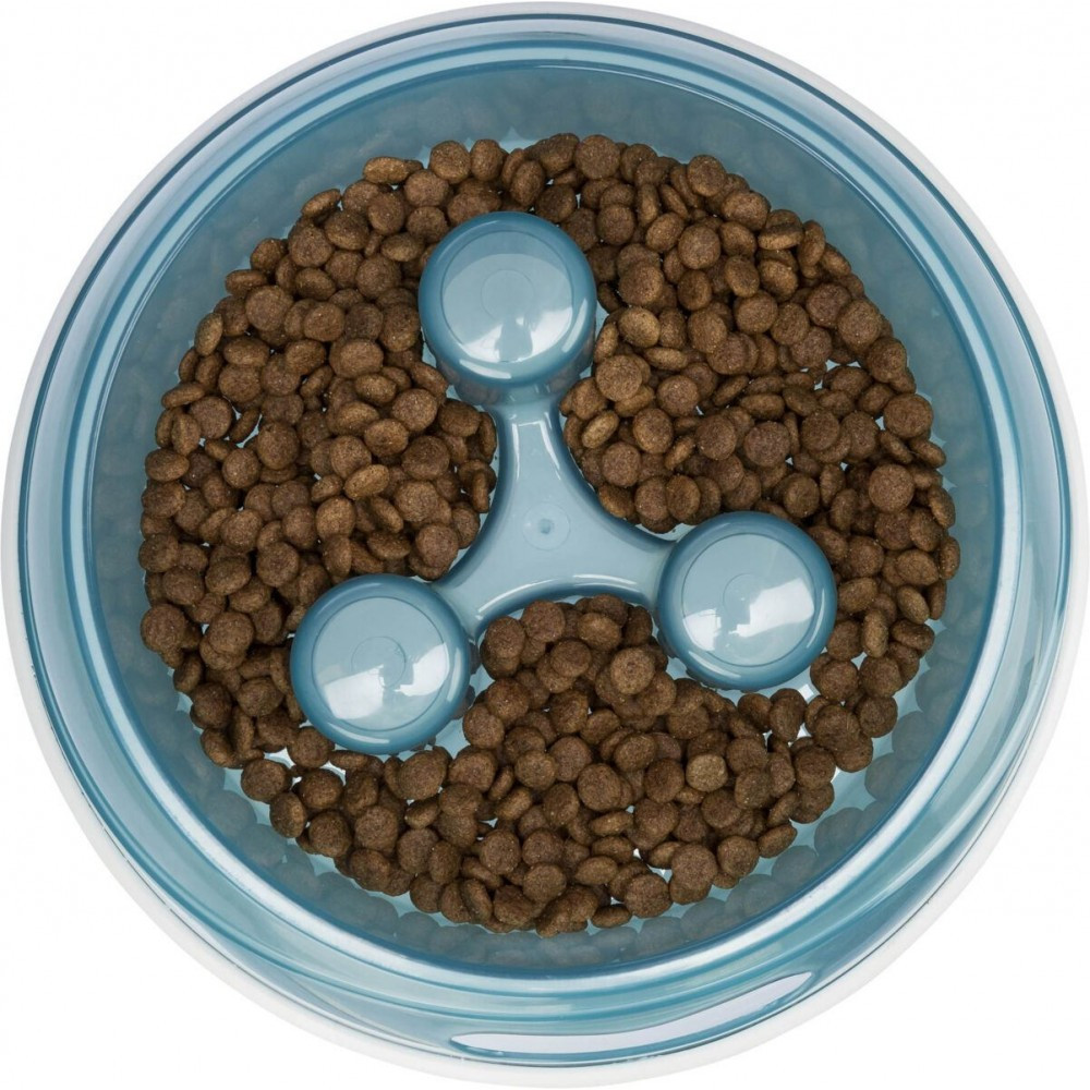 Повільне поїдання корму є чудовим способом попередити у вашого улюбленця переїдання та спричинені ним проблеми – надмірне газоутворення, ожиріння. Прекрасним помічником для організації процесу повільного поїдання стане ця миска від Trixie.Запобігає швидкому проковтуванню їжіПідходить для всіх типів кормуНе ковзає завдяки гумовій основіМатеріал: пластикРозмір: 1,5 л/d 27 cм