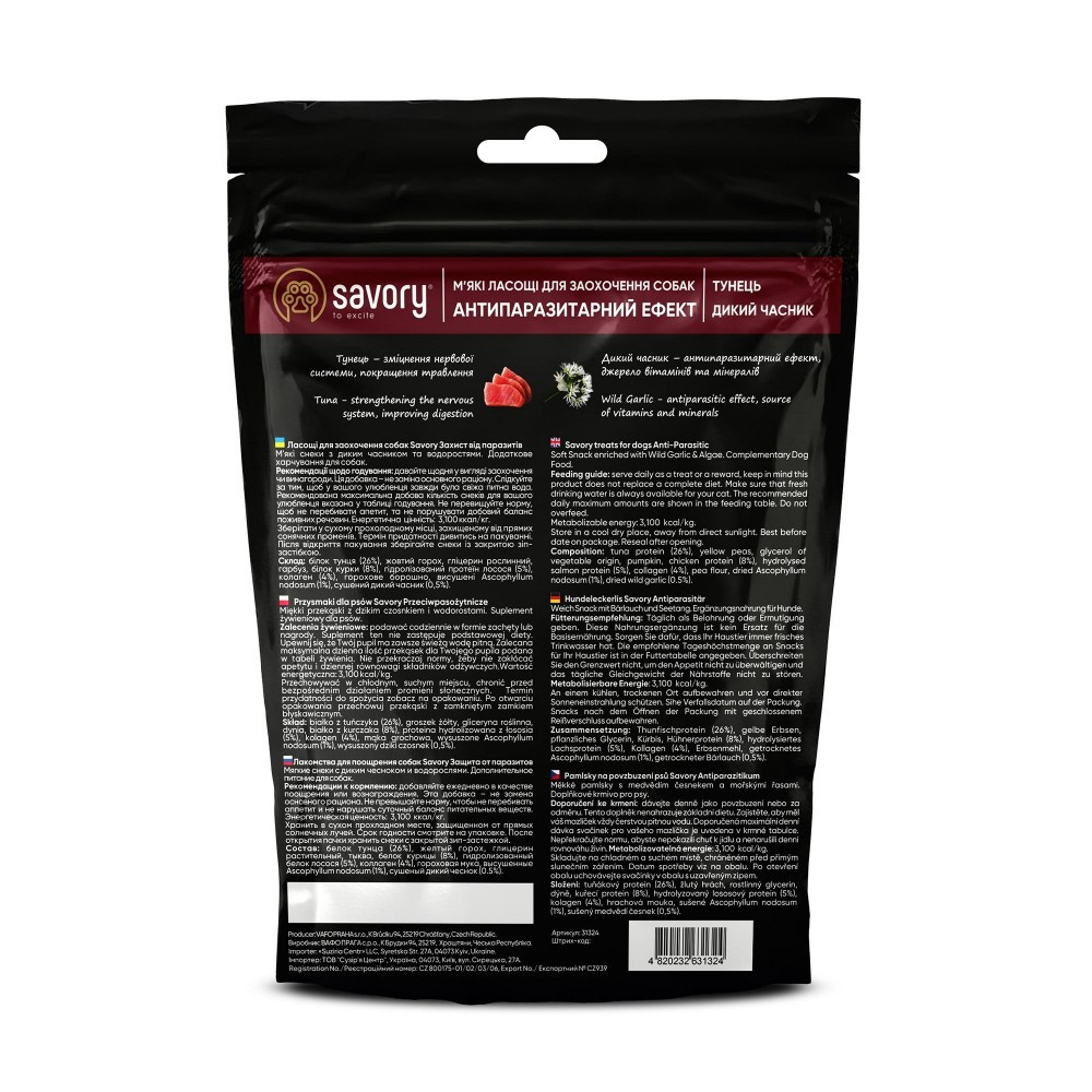 М’які ласощі Savory Anti-Parasitic Tuna and Wild Garlic для собак усіх порід з антипаразитарним ефектом з тунцем і…