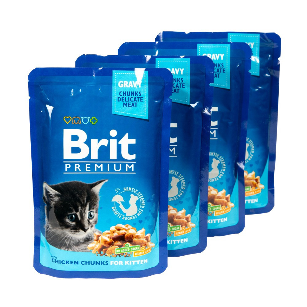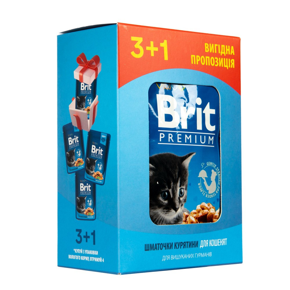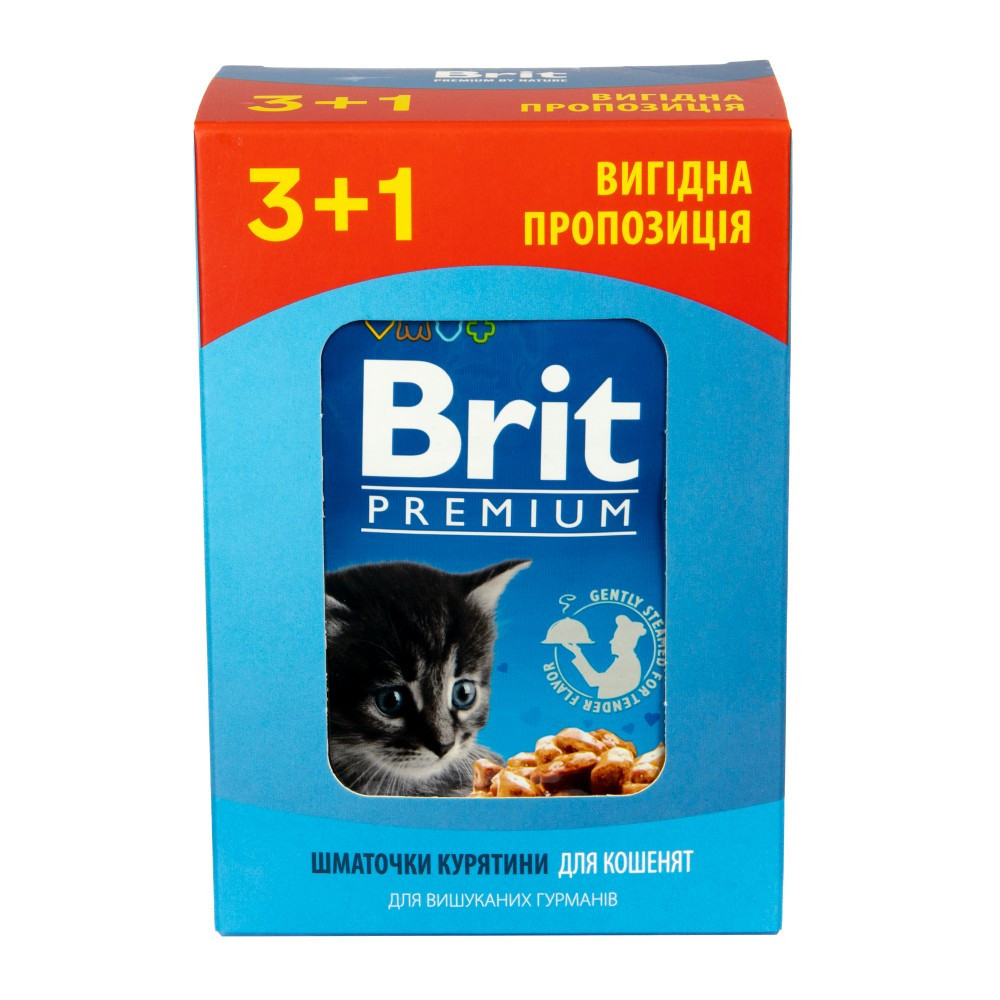 Будьте першим, хто залишив відгук на “Набір паучів 3+1 Brit Premium Kitten Chicken Chunks для кошенят шматочки в соусі з куркою 4х100 г”