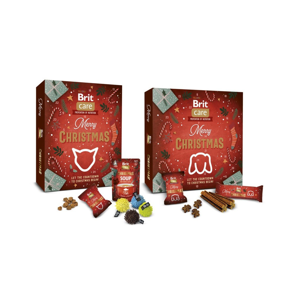 Різдво – це особливий час, наповнений теплом, затишком і спільними ритуалами. І ваш песик заслуговує розділити цю магію разом із вами!Зробіть очікування свята щоденною радістю для свого улюбленця разом з Адвент-календарем Brit Care для собак.Натхненний справжнім духом Різдва, його вміст не лише потішить смакові рецептори, а й подарує моменти близькості для вас із хвостиком.Що всередині? Спеціальні різдвяні смаколики!24 святкових і апетитних сюрпризи за кожним віконцем:3 шт. ласощів-паличок Brit Care Dental Stick зі смаком яблучного штруделя для зубів21 снек Brit Care Dog Christmas treats у формі імбирного печива для щоденної насолодиБез зернових, смачні та функціональні.Підходять для собак будь-якого розміру.Ласощі Brit Care Dog Christmas treats для дорослих собак усіх порід – напівм’який смаколик з корицею, імбиром, гвоздикою та анісом.Склад:курячий протеїн (30%), жовтий горох (28%), гліцерин рослинного походження (15%), гідролізована куряча печінка (8%), колаген (5%), червона сочевиця (4%), гарбуз (4%), сушена кориця (2%), горохове борошно, сушений імбир (1%), сушений аніс (0,5%), сушена гвоздика (0,5%), фульвова кислота (0,5%), екстракт канталупи (0,01%), інактивовані бактерії та їх частини (Lactobacillus helveticus HA – 122, 15×10⁹ клітин/кг).Аналітичні складові:сирий протеїн – 28,0%,сирий жир – 5,0%,сира клітковина – 2,5%,сира зола – 6,0%,вологість – 17,0%,кальцій – 1,0%,фосфор – 1,0%,натрій – 0,5%,омега-3 жирні кислоти – 0,1%,омега-6 жирні кислоти – 0,7%Добавки на 1 кг:вітамін С (3a312) – 350 мг. Технологічні добавки: лимонна кислота (1a330), DL-яблучна кислота (1a296), сорбат калію (1k202).Енергетична цінність:3070 ккал/кг.Brit Care Dental Stick для собак усіх порід, з яблуками та корицею.Дентальний снек для щоденного догляду за зубами.Склад:борошно вівса, гліцерин рослинного походження (14%), картопляний крохмаль (10%), гідролізовані дріжджі (5%), сушені яблука (4%), меласа (3%), сушена кориця (2%), гексаметафосфат натрію (0,3%).Аналітичні складові:сирий протеїн – 9,5%, сирий жир – 3,5%, сира клітковина – 3,2%, сира зола – 2,6%, вологість – 17%, кальцій – 0,1%, фосфор – 0,2%, натрій – 0,05%Добавки на 1 кг:вітамін С (3a312) – 35 мг.Енергетична цінність:3015 ккал/кг.Рекомендації щодо годування:пропонуйте своєму собаці як ласощі або винагороду. Завжди забезпечуйте доступ до свіжої питної води. Це не повноцінний корм, не перевищуйте рекомендовану добову дозу.