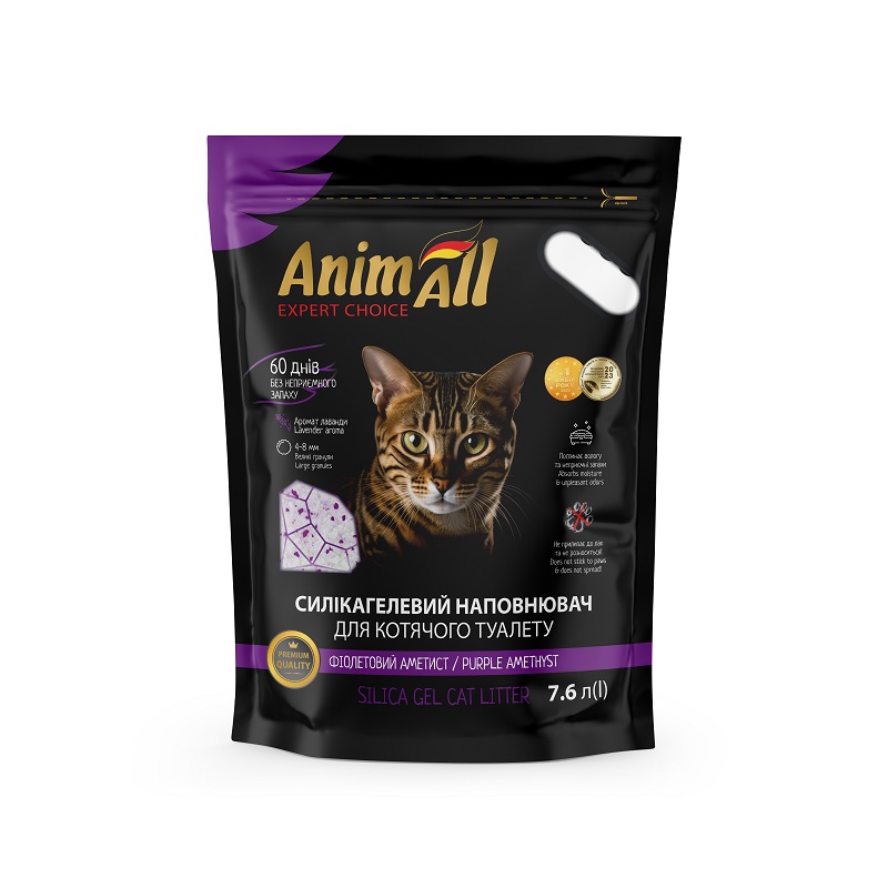 Силікагелевий наповнювач AnimAll PremiumКРИСТАЛИ АМЕТИСТУдля котів, 7.6 л (3.2 кг)