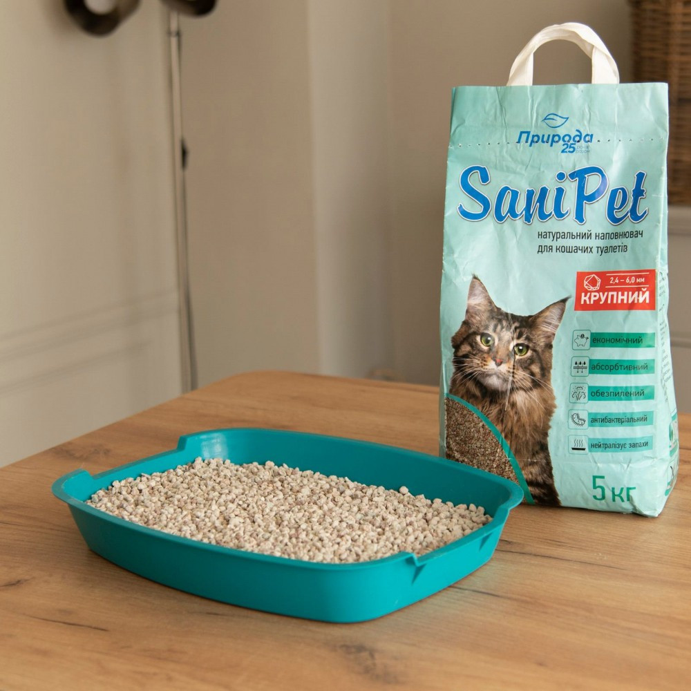 Бентонітові гранули – натуральний наповнювач для лотків, що має високі абсорбуючі властивості. Він створений з бентонітових та палигорскітових глин, що пройшли очищення і спеціальну обробку. Наповнювач має високу пористість і здатність поглинання вологи. Гранули при попаданні рідини моментально утворюють щільну грудку, яку можна легко видалити.100% натуральна сировина не викликає алергії у тварин та людей, ефективно вбирає вологу, попереджує її випаровування, усуває неприємний запах, уповільнює розвиток патогенних бактерій. Глина не розмокає й не прилипає до лап та шерсті тварини.Додаткові переваги бентонітового наповнювача ТМ «Природа»:екологічністьвідсутність пилу та брудуможливість часткової заміни, економне використаннязаокруглена форма гранул попереджає травми лап і не викликає в тварини дискомфорту під час перебування в лоткулегко відмиваєтьсямає приємний свіжий ароматзручна упаковка з ручкою для перенесення.Гранули оптимального розміру забезпечують тварині комфортні умови для справляння природних потреб.Спосіб використання:застосовується як наповнювач туалетів для домашніх тварин. Насипати наповнювач у лоток шаром 4-5 см. Можна використовувати лоток із сіткою або лоток з високими стінками. Не рідше одного разу на добу прибирайте тверді екскременти і грудочки, що утворилися. Досипайте необхідну кількість свіжого абсорбенту у лоток. При використанні підлоги з підігрівом рекомендовано лоток розмістити на теплоізоляції.Склад:бентоніт (фракція 3,5-5 мм).Маса:5 кгОб’єм:7 л