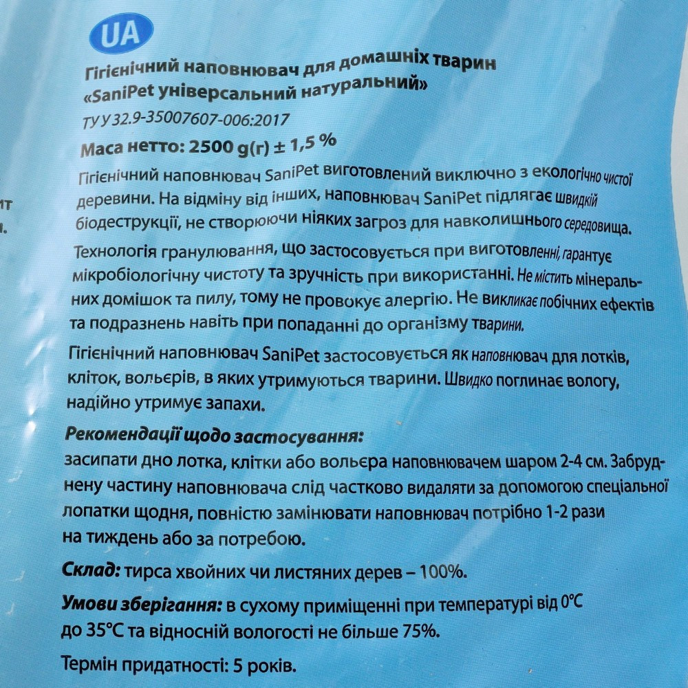 Деревинний наповнювач для лотків – дешевий та екологічний, є чудовим абсорбентом, швидко вбирає та утримує неприємні запахи. Продукт на 100% натуральний, не містить хімічних добавок, завдяки дезінфікуючим властивостям деревини хвойних порід уповільнює розвиток патогенних мікроорганізмів.Для виготовлення використовуються виключно дрібна тирса без великих шматків кори та деревини, тому якщо тварина випадково проковтне наповнювач, це не завдасть шкоди. Заокруглені гранули не травмують лапи, не створюють пил. Наповнювач особливо рекомендований кошенятам, яких тільки-но починають привчати до лотка, і невеликим гризунам.Якість продукту відповідає європейським стандартам. Сировина – виключно свіжа деревина без гнилизни та грибка. Природний аромат приваблює тварин. Лоток після використання продукту дуже легко миється.Склад: деревна тирса.Умови зберігання:в сухому приміщенні при температурі від 0°С до 35 °С та відносній вологості 75%.Термін придатності:5 років.Маса: 2,5 кг