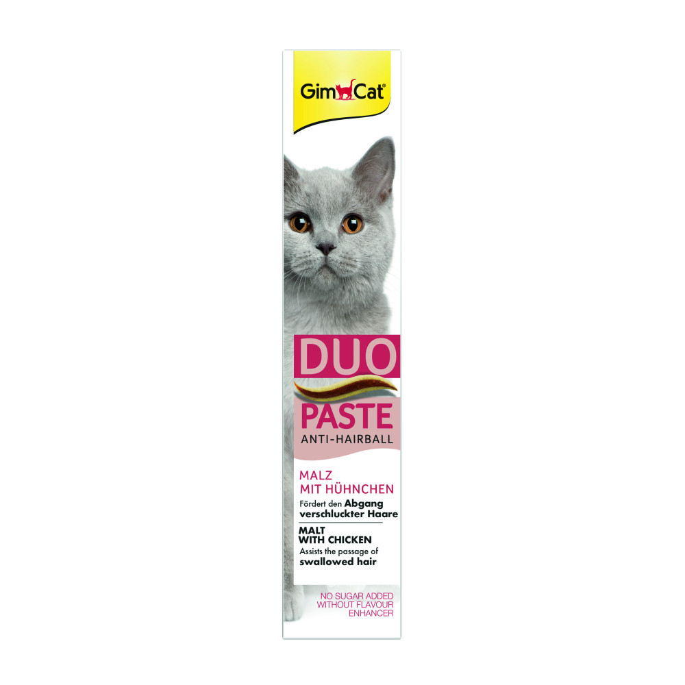 Паста GimCat DUO PASTE Anti-hairboll malt with chicken для котів з чутливим травленням усіх порід мальт та курка 50г