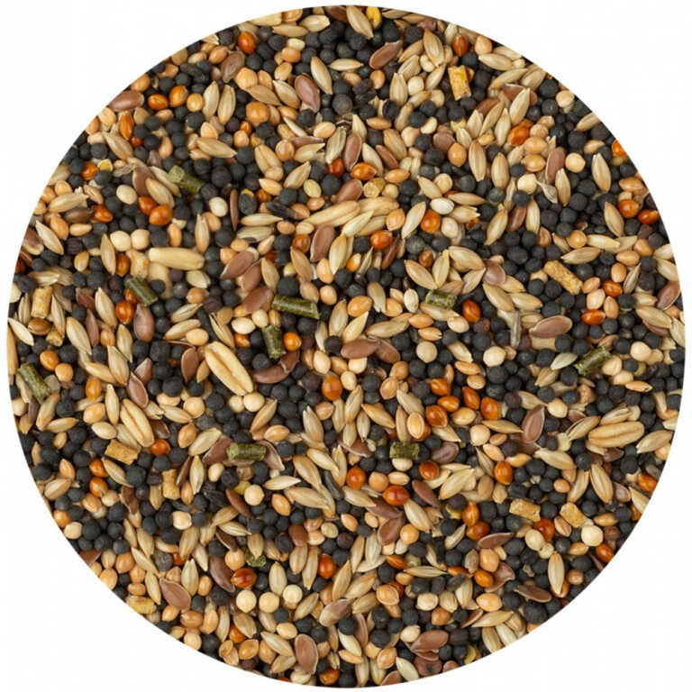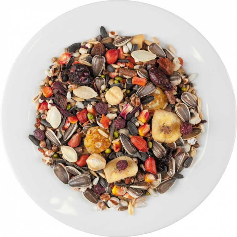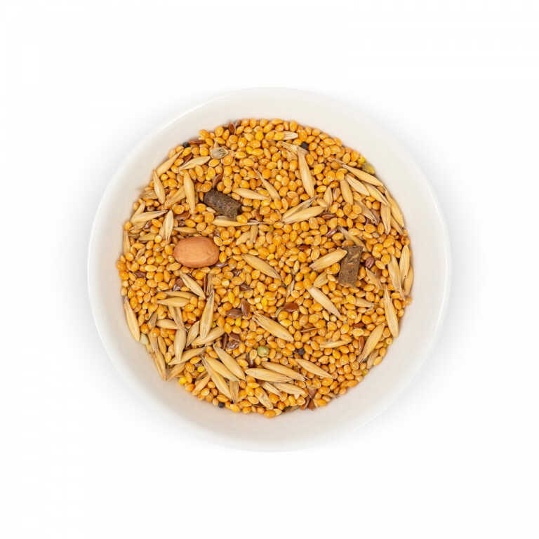 Рецептура корму розроблена спеціально для амадин, амарантів та інших декоративних птахів, які утримуються в домашніх умовах. Вона складена на основі найновітніших світових норм годування, а також рекомендацій провідних світових фахівців з розведення та утримання екзотичних птахів.Корм має унікальний, надзвичайно багатий склад, до якого входять не лише базові інгредієнти та смаколики, але й продукти з природного ареалу проживання екзотичних птахів. До складу корму увійшло 18 інгредієнтів, серед яких високоякісне зерно, сушені фрукти, овочі, цілющі рослини, а також улюблені делікатеси – абіссінський нуг, кунжут білий, ромашка, фенхель, суданська трава. Корм збагачено інгредієнтами, які зміцнюють здоров’я, роблять оперення яскравим і прискорюють линьку.Чому треба обрати корм:ЗДОРОВЕ СЕРЦЕ, СУДИНИ І СИСТЕМА ТРАВЛЕННЯ. Завдяки фенхелю і суданській траві.КОМПЛЕКС НАТУРАЛЬНИХ ВІТАМІНІВ. В лікарських рослинах, суперфудах, овочах і фруктах, оброблених за щадною технологією.СТРЕСОСТІЙКІСТЬ ТА ОПІРНІСТЬ ІНФЕКЦІЯМ. Завдяки квітам ромашки, фенхелю і суданській траві.МІЦНІ КІСТКИ І М’ЯЗИ. Завдяки абіссінському нугу і кунжуту, що містять кальцій, магній, селен, цинк, вітаміни А, С, групи В.Склад: просо жовте, просо червоне, канаркове насіння, просо чорне, овес голозерний, амарант, насіння льону, чумиза, рапс, абіссінський нуг, кунжут білий, суданська трава, насіння соняшнику очищене, сушене яблуко, сушена морква, насіння конопель, фенхель, квіти ромашки.
