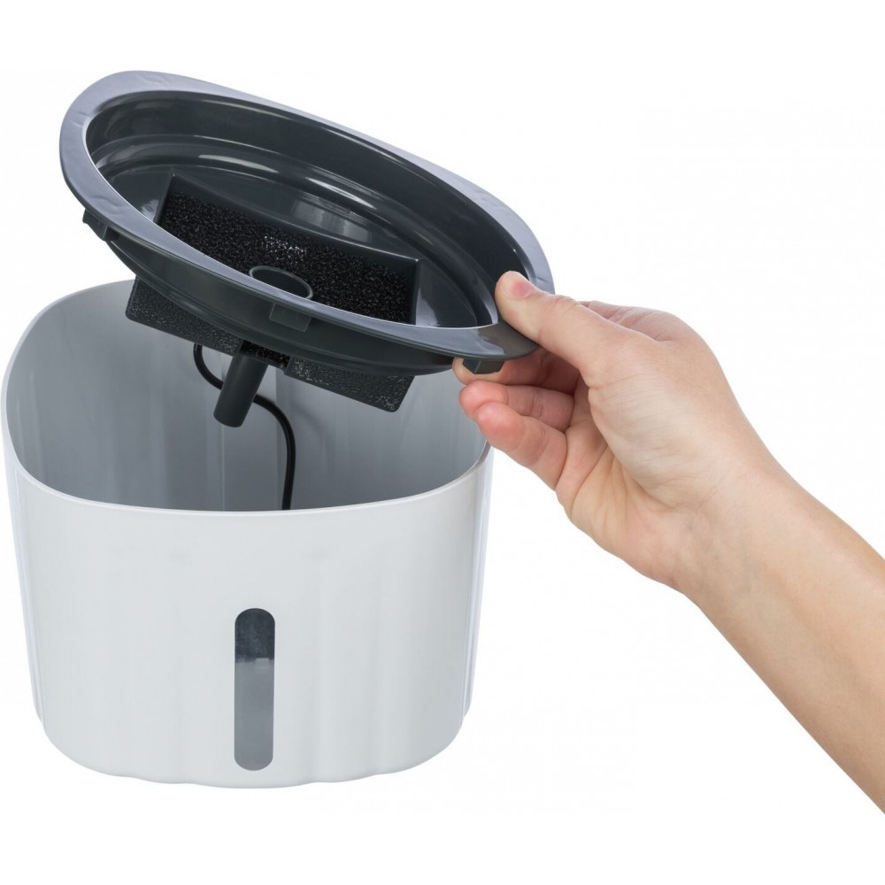 Котики люблять пити проточну воду, бо їх до цього підштовхує інстинкт. Адже така вода завжди свіжа, смачна та чиста, а ще вони сподіваються там впіймати рибку! Завдяки поїлці-фонтану Trixie ви зможете задовольнити цей прадавній інстинкт в улюбленця.ЇЇ особливості:Збагачує воду киснемЦиркуляція підтримує прохолодну температуру водиФільтр забезпечує чистоту водиЗмінна помпаІндикатор рівня водиЗ USB-роз’ємом та мережевою вилкоюЗапасний фільтр: арт. 24445Й хоч рибки котик не спіймає, але спрага та зневоднення з такою поїлкою точно не загрожують вашому улюбленцю!Розмір: 2 л/18,5 × 13 × 18,5 смМатеріал: пластик