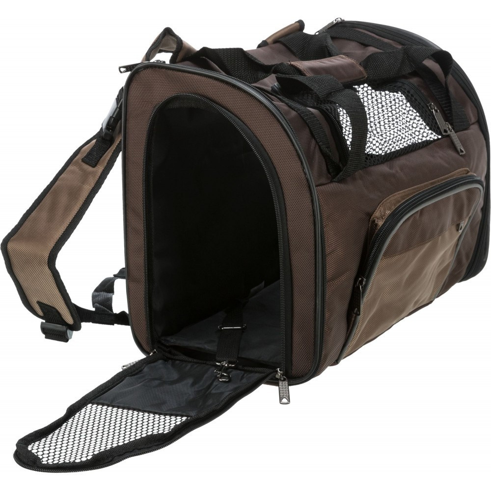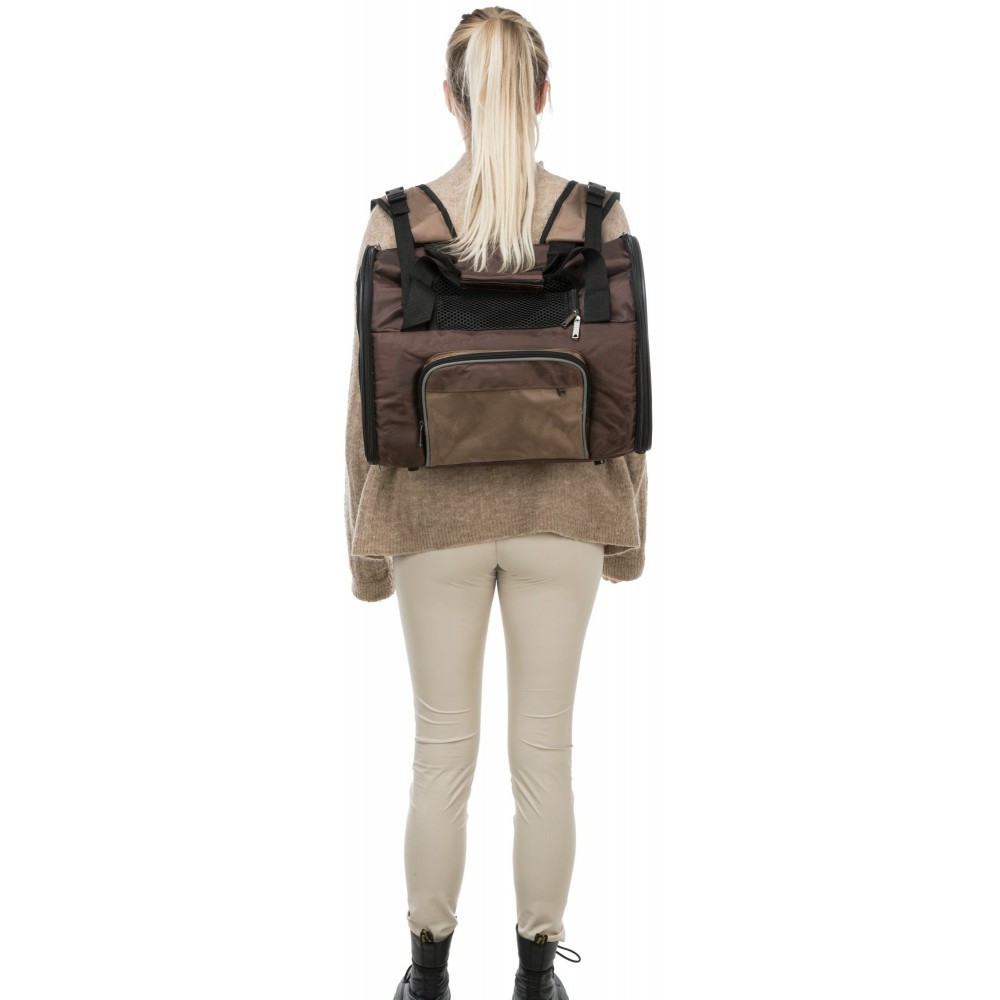 Рюкзак-переноска Trixie «Shiva» 41 x 30 x 21 см (коричнева) – це розробка знаменитого німецького виробника товарів для тварин Trixie, яка призначена для транспортування вихованців в поїздках. Вихованці часто погано реагують на будь-якого роду переїзди, а це безпосередньо впливає на їх здоров’я. Структура переноски забезпечить вихованцеві максимальний комфорт, а хороша вентиляція дозволить зберегти самопочуття вихованця на високому рівні.Основні переваги переноски:Міцні кріпленняЗручна ручкаЗроблено з натуральних матеріалівКомфортні умови для вихованцяПідходить для всіх порідВідмінно убезпечить вихованцяТака переноска допоможе вихованцеві забути про всі труднощі переїзду, він буде надійно захищений від навколишнього світу, а комфортні умови перетворять довгу дорогу в відпочинок!Характеристики:високоякісний надміцний поліестерможе використовуватися як рюкзак і як переносказ м’якою підкладкоювідкривається спереду і збокуплечові і поясні ремені плавно регулюютьсяанатомічна форма плечових ременів з кишенькою для мобільного телефонуз двома додатковими передніми кишенямизі світловідбиваючими елементамиз коротким повідцем для безпекисітчасті вставки для оптимальної циркуляції повітряз нейлоновим ременем для кріплення до візказнімне дно на м’якій підкладціколір: коричневий / бежевийдо 8 кг
