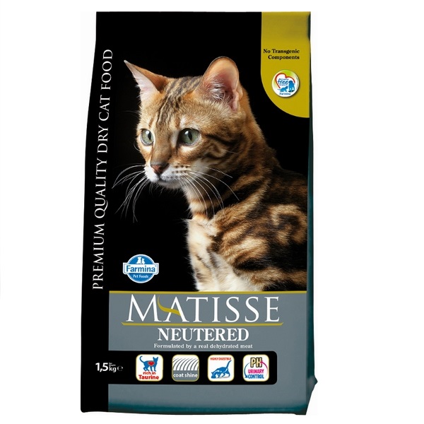 Повнораціонний та збалансований корм для дорослих стерилізованих кішок та кастрованих котів.Склад: Дегідратоване м’ясо курки та індички (32%), рис (25%), кукурудза, дегідратована риба, курячий жир, гідролізат тваринних білків, пульпа цукрових буряків, сушена морква (2%), порошок шпинату (2%), порошок пульпи червоного буряка (2%), риб’ячий жир, олія, кукурудзяний глютен, дегідратовані цілісні яйця, хлорид натрію, хлорид калію, сульфат кальцію,сухі пивні дріжджі.Добавки на 1кг – Вітамін А 16000МЕ; Вітамін D3 1600МЕ; Вітамін Е 160мг; Вітамін С 160мг; Ніацин 40мг; Пантотенова кислота 16мг; Вітамін В2 8мг; Вітамін В6 6.4мг; Вітамін В1 4.8мг; Вітамін Н 0.4мг; Фолієва кислота 0.48мг; Вітамін В12 0.06мг; Холін хлорид 2200мг; оксид цинку 108мг; сульфат цинку моногідрат 120мг; марганцю сульфат моногідрат 150мг; сульфат заліза моногідрат 44мг; заліза карбонат 60мг; сульфат міді пентагідрат 50мг; йодат безводний кальцію 2.4мг; селеніт натрію 0.22мг; DL-метіонін 3000мг.Спеціальні добавки: фарбники.Поживні речовини: сирий білок 32.00%; сирий жир та олія 11.00%; сира клітковина 1.20%; сира зола 6.60%; кальцій 1,00%; фосфор 0,90%; магній 0,08%; таурін 1800мг/кг.ЕНЕРГЕТИЧНА ЦІННІСТЬEM Kcal/Kg 3567 – Mj/Kg 14,92Рекомендації щодо використання: норми годівлі вказані в таблиці на упаковки. Зберігати у прохолодному, сухому місці, у закритій упаковці. Вироблено за 18 місяців до закінчення терміну придатності, вказаного на упаковці. Вага нетто, термін придатності, код партії та реєстраційний номер вказано на звороті упаковці.