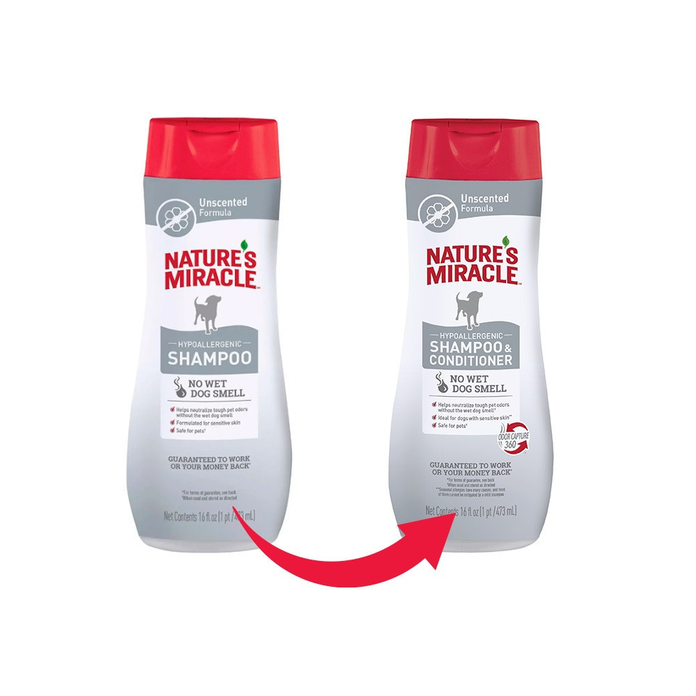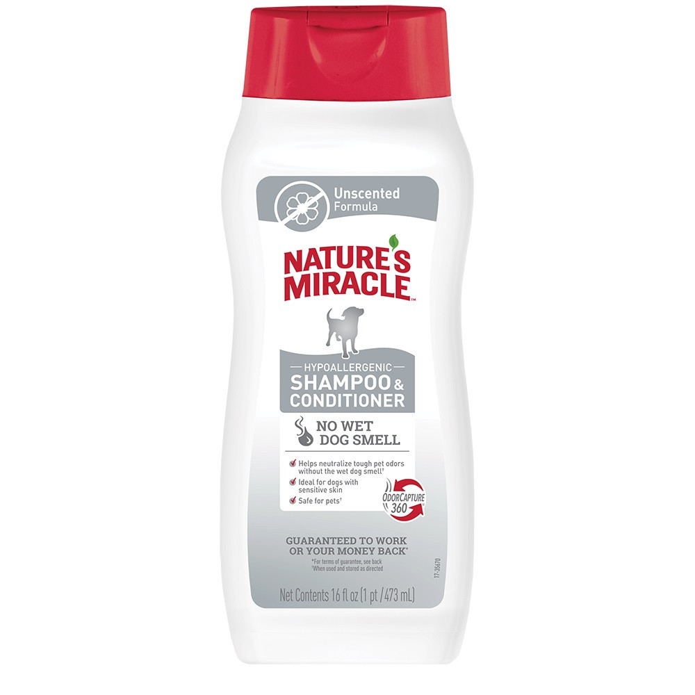 Шампунь ефективно нейтралізує запахи, ліквідує запах мокрої шерсті.Підтримує тривалий дезодоруючий ефект.Формула для чутливої ​​шкіри знижує ризик виникнення алергії.Алое вера зволожує і заспокоює шкіру.Формула легко змивається, що скорочує час купання собаки.Виробництво – США.Інструкція із застосування:нанесіть на шерсть невелику кількість шампуню і спіньте його. Акуратно помасажуйте собаку, уникаючи попадання шампуню в очі. Змийте водою і повторіть при необхідності.Склад: вода, м’які поверхнево-активні речовини, ополіскувачі, консерванти, алое вера, сіль, система контролю запаху, хелатуючий агент, етилгліцерин, D-пантенол (провітамін В5), кератин, екстракт календули, лимонна кислота, алантоїн, кокосова вода, вітамін Е.