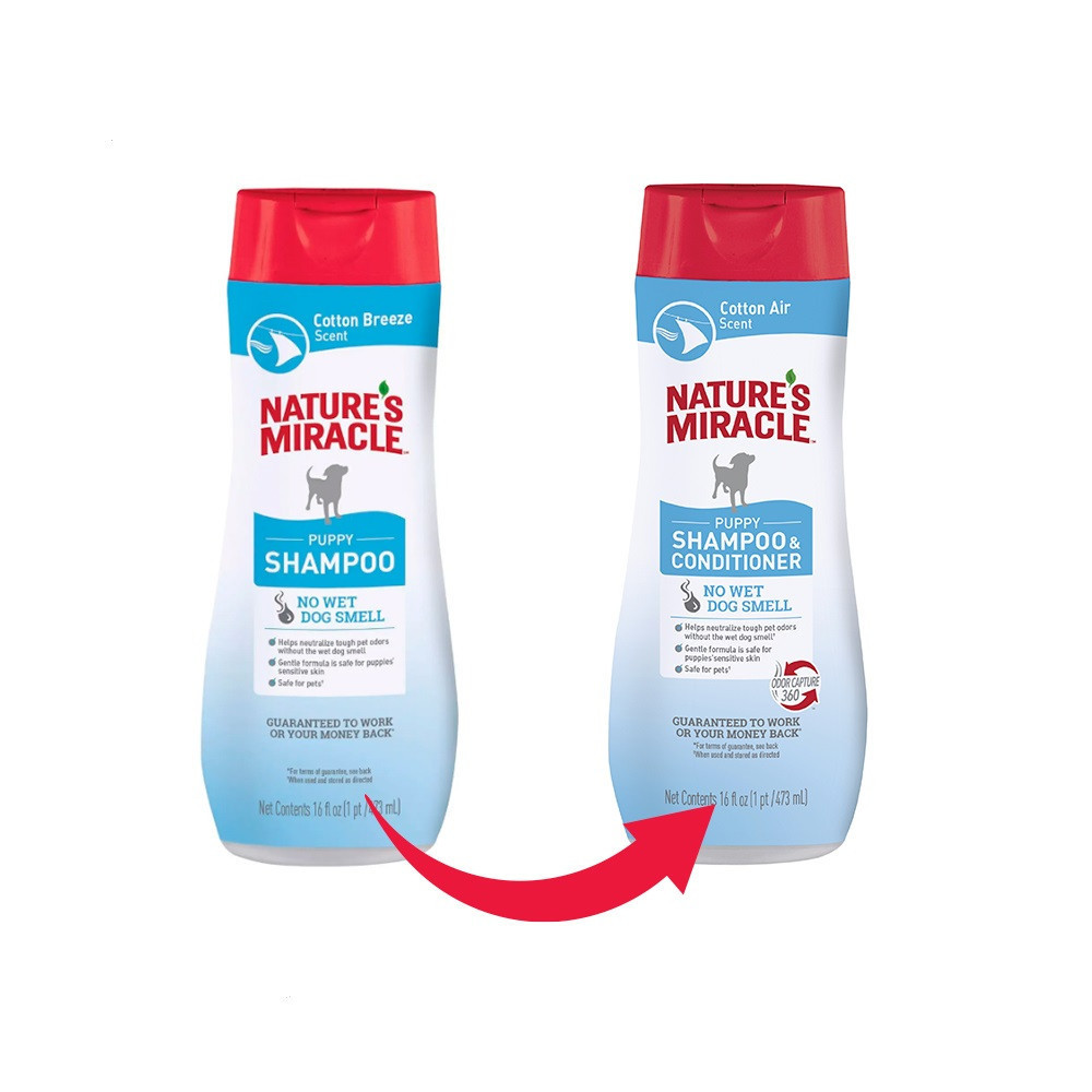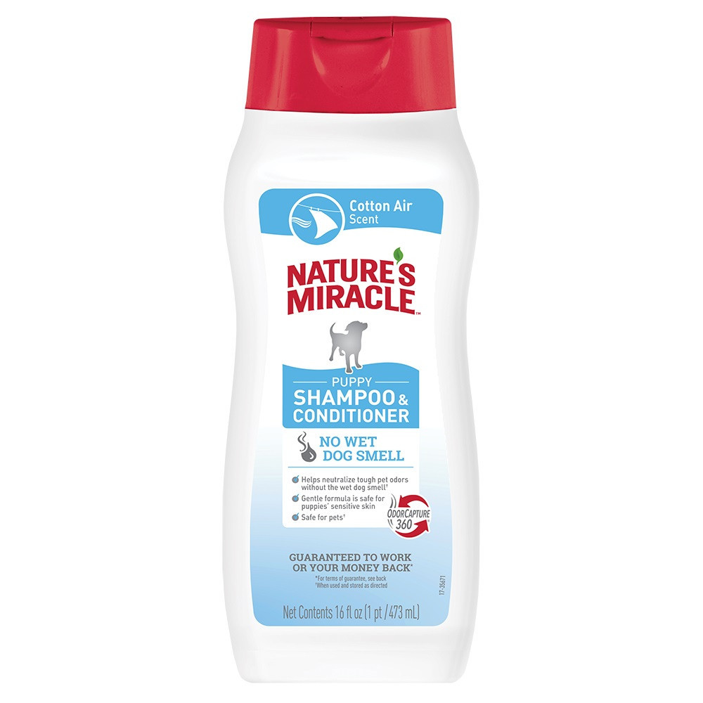 Шампунь ефективно нейтралізує запахи, ліквідує запах мокрої шерсті.Підтримує тривалий дезодоруючий ефект.Делікатна формула підходить для чутливої шкіри цуценят.Кератин в складі шампуню зміцнює волосся.Пантенол відновлює шкіру і шерсть.Алое вера зволожує та заспокоює шкіру.Формула легко змивається, що скорочує час купання цуценяти.З ароматом свіжої бавовни.Виробництво – США.Інструкція із застосування:нанесіть на шерсть невелику кількість шампуню і спіньте його. Акуратно помасажуйте собаку, уникаючи попадання шампуню в очі. Змийте водою і повторіть при необхідності.Склад: вода, м’які поверхнево-активні речовини, ополіскувачі, консерванти, алое вера, ароматизатор із системою контролю запаху, сіль, хелатуючий агент, етилгексилгліцерин, кератин, D-пантенол (провітамін В5), екстракт календули, лимонна кислота, кокосова вода, вітамін Е.