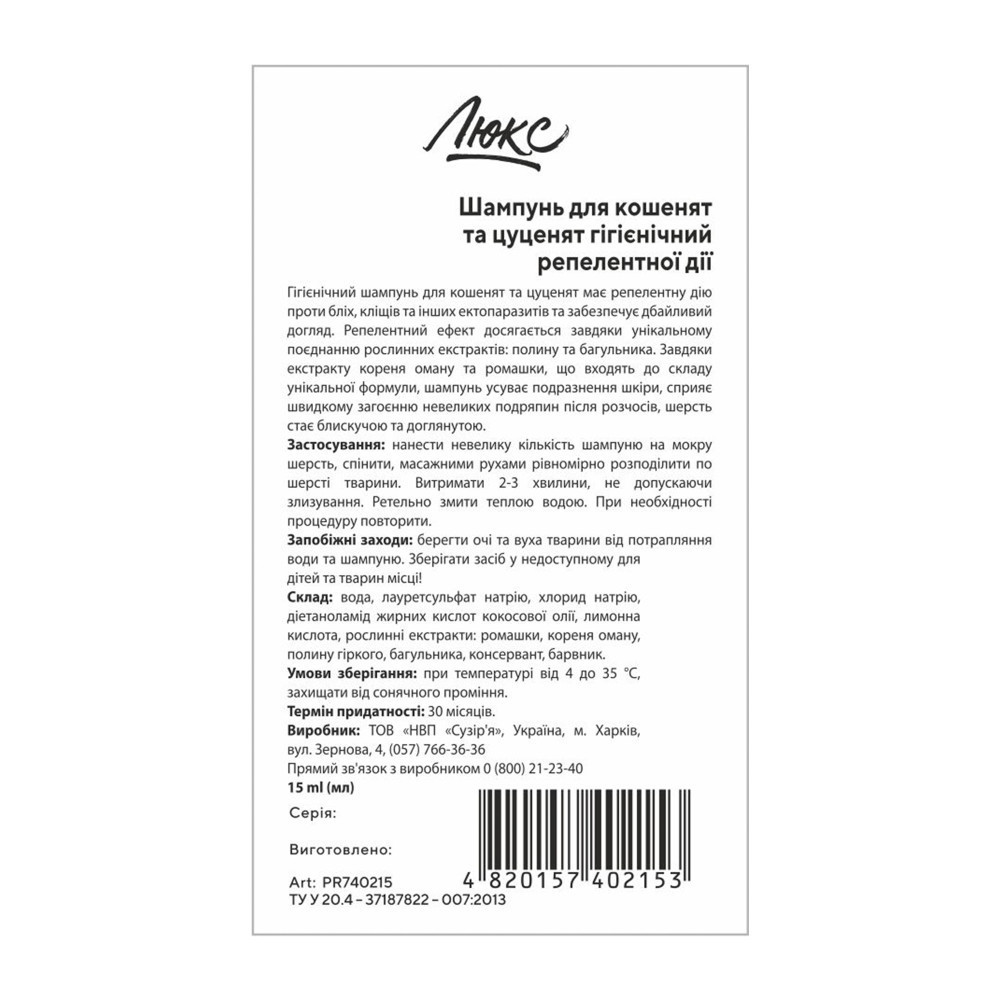 Шампунь Люкс для кошенят та цуценят гігієнічний репелентної дії 15 мл
