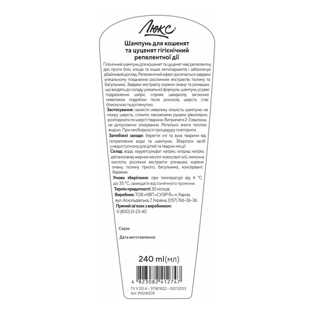 Шампунь Люкс для кошенят та цуценят гігієнічний репелентної дії 240 мл