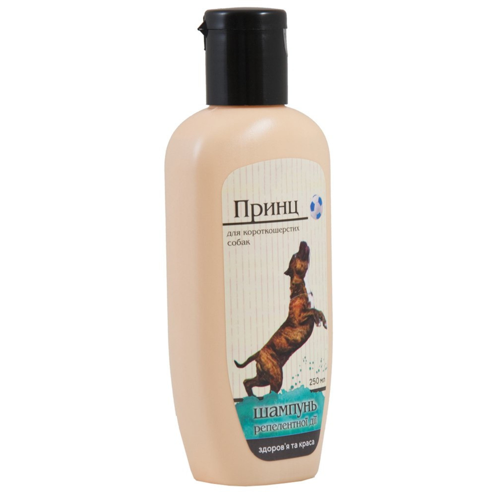 Гігієнічний шампунь для короткошерстих собак має репелентну дію проти бліх, кліщів та інших ектопаразитів. Репелентний ефект досягається завдяки унікальному поєднанню лікарських трав. Шампунь знімає подразнення, пом’якшує та тонізує шкіру, сприяє загоюванню розчосів.Спосіб застосування:Нанести невелику кількість шампуню на мокру шерсть, спінити, масажними рухами рівномірно розподілити по шерсті тварини. Витримати 2-3 хвилини, не допускаючи злизування. Ретельно змити теплою водою. При необхідності процедуру повторити.Запобіжні заходи:берегти очі та вуха тварини від потрапляння води та шампуню.Умови зберігання:При температурі від 4 °С до 35 °С. Не допускати контакту з харчовими продуктами, напоями, кормом для тварин. Захищати від прямих сонячних променів.Склад:Вода, лауретсульфат натрію, хлорид натрію, діетаноламід жирних кислот кокосової олії, лимонна кислота, консервант, барвник, екстракт полину гіркого, екстракт персика, екстракт оману, екстракт кмину чорного.Термін придатності:30 місяців.Об’єм:250 мл.Технічні умови (ТУ):ТУ У 20.4-37187822-007:2013. Сертифікат: ISO 9001:2015.
