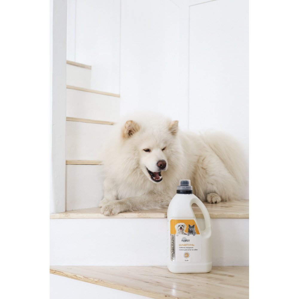 Універсальний шампунь з екстрактом алое для глибокого очищення всіх типів шерсті. Ефективно видаляє всі види забруднення зі шкіри та шерсті тварин, у тому числі сліди продуктів стайлінгу, нормалізує роботу сальних залоз. Формула шампуню містить натуральні компоненти, які сприяють збереженню природного антибактеріального шару на шкірі тварини та створюють захисний бар’єр. Екстракт алое заспокоює чутливу шкіру, знімає подразнення, має протизапальну та заспокійливу дію. Тетраніл U забезпечує бактерицидний та протигрибковий ефект. Шерсть набуває здорового вигляду, природного блиску, шкіра зволожена та доглянута.Переваги:нормалізує роботу сальних залоз;зберігає природний антибактеріальний шар висока миюча здатність – миє шерсть та очищує шкіру;має протизапальну та заспокійливу дію;не містить парабенів та силіконів;шкіра зволожена та доглянута.Спосіб застосування:рівномірно розподілити масажними рухами невелику кількість шампуню до утворення піни, не допускаючи злизування і потрапляння в очі. Змити теплою водою.Умови зберігання: засіб повинен зберігатися у критих, сухих, вентильованих приміщеннях за температури не нижче 5 °C і не вище 25 °C, повинен бути захищений від сонячного випромінювання.Склад:Aqua, Sodium Laureth Sulfate, Cocamidopropyl Betaine, Cocamide DEA, Sodium Chloride, Poliquaternium-7, Citric Acid, Tetrasodium EDTA, Tetranyl U, Aloe Extract, Melaleuca Alternifolia (Tea Tree) Extract, Chamomilla Recutita (Chamomille) Extract, Methylchloroisothiazolinone, CI 42090, Parfum.Термін придатності:30 місяців.Об’єм:3 л.Технічні умови (ТУ):ТУ У 20.4-37187822-026:2021. Сертифікат: ISO 9001:2015.
