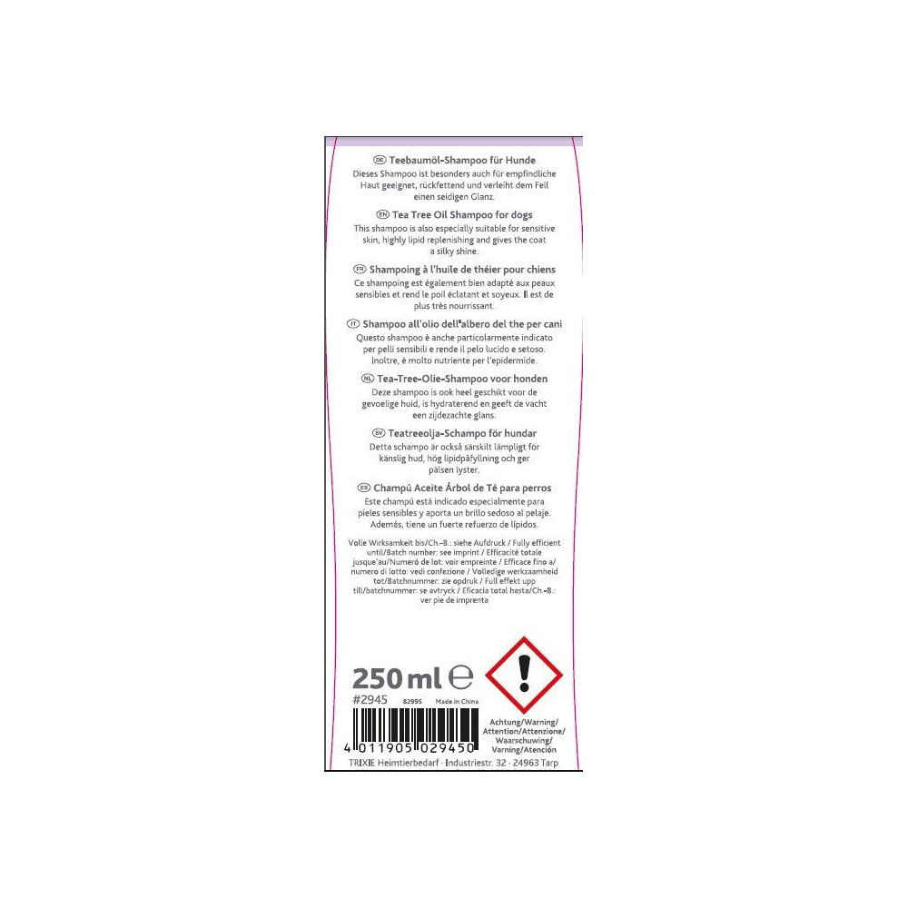 Шампунь для собак Trixie з олією чайного дерева – це засіб гігієни улюбленців, представлений знаменитим німецьким брендом товарів для тварин Trixie, який стане незамінним для вашого друга! Шампунь містить чисті натуральні олії австралійського чайного дерева. Безпечний для очей. Надає шерсті Вашої тварини здоровий блиск и живить шкіру. Ідеально підходить для частого використання, особливо для тварин з чуттєвою шкірою і шкірою, схильною до лущення.Використання: нанести шампунь на вологу шерсть и ретельно намилити. Добре ополоснути. При необхідності повторити. У випадку виникнення проблем зі шкірою – зверніться до свого ветеринара. Виникайте попадання в очі. Зберігайте у прохолодному і темному місці.Склад: 5-15 % аніонні поверхнево-активні речовини, < 5 % амфотерні поверхнево-активні речовини, неіонні поверхнево-активні речовини, ароматизатори, консерванти.