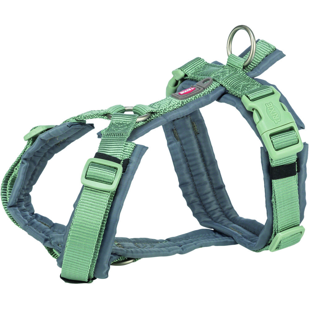 Шлея Trixie Premium трекінгова ідеально підходить для щоденних прогулянок з улюбленцем, гарантуючи вам надійний контроль, а песику – безпеку. Вона виготовлена з міцної ремінної стрічки, має м’яку оббивку по всьому колу. Ремінці на шиї та животі регулюються, що дає можливість підігнати шлею під індивідуальні розміри собаки. Є додаткове кільце для кріплення повідця в області грудей і петля для кріплення жетона або мигалки.Відповідає вимогам щодо добробуту тварин відповідно до розділу 18 (AT).Матеріали: ремінна стрічкаРозмір: XS–S 32–38 см/13 ммКолір: блакитно-сіра