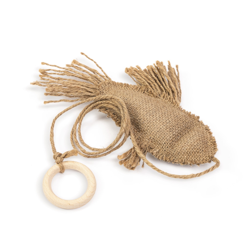 Ця «золота рибка» може й не виконає всі бажання вашого котика, але те, що вона дозволить награтися досхочу, це факт. Іграшку зручно підкидати кігтиками, хвостик рибки з ниток дарує цікаві тактильні відчуття, а при натисканні на іграшку вона загадково і дуже цікаво шурхотить. Гратися з рибкою котик може з господарем або самостійно – треба тільки підвісити її в зручному місці. Іграшку можна прати за потребою.Характеристики моделі:матеріали: натуральна тканина, деревина, гіпоалергенний наповнювачможливість грати за участі людини та самостійнопростий догляд.Матеріали: мішковина, синтепон, джутова мотузка, дерев’яне кільце, шурхітлива поліетиленова плівка всерединіКолір: бежевийРозмір: 22х17 смРекомендуєтьсяручне прання при температурі не вище 40 ℃.* Відтінки кольорів реального товару, можуть відрізнятися від фото на екрані пристроїв, залежно від виду екрана та його передачі кольору.