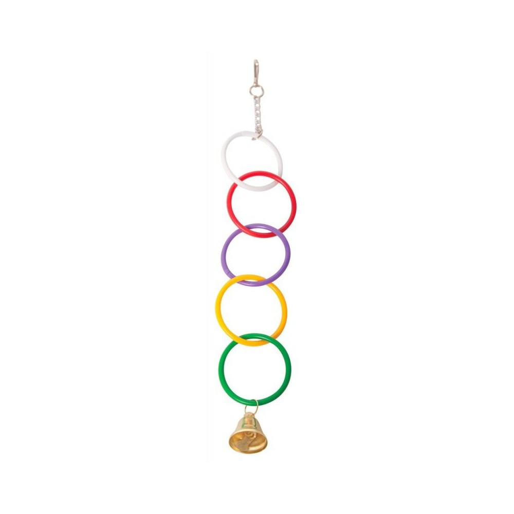 Гірлянда з різнокольорових кілець з дзвіночком порадує пернатого улюбленця, не дасть йому нудьгувати і допоможе підтримувати хорошу «спортивну» форму.Чому ваш улюбленець буде радий отримати таку іграшку?Надійне кріпленняМожливість підніматися, спускатися і перекидатисяДзвіночок видає приємні звукиПластик міцний і безпечнийДовжина: 31,5 смМатеріал:Первинний поліпропілен, метал