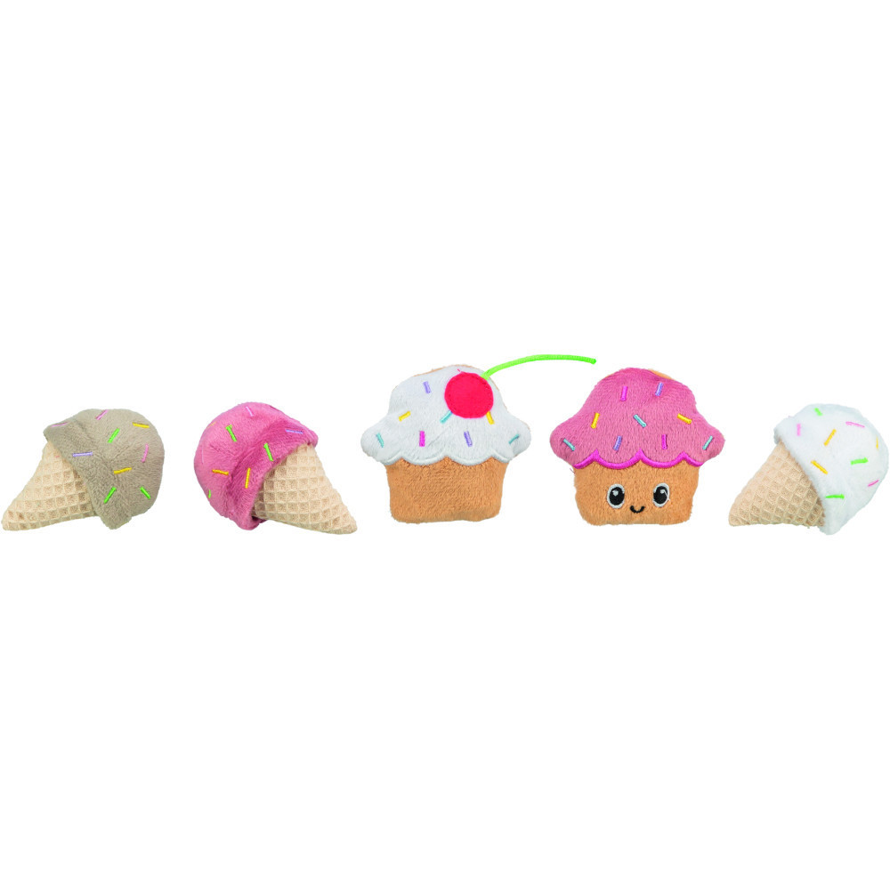 Хто сказав, що морозиво тільки для людей? Ваш муркотун тепер може насолоджуватися власними ласощами з іграшками Trixie Морозиво і Тістечка з котячою м’ятою! Ці “смачні” десерти не розтануть, зате принесуть море радості. Що може бути краще, ніж ганяти за кексиком, який ще й весело шарудить?Готуйтеся до справжнього котячого бенкету!Матеріли:плюш (поліестер)Розміри:7 смКолір:в асортименті
